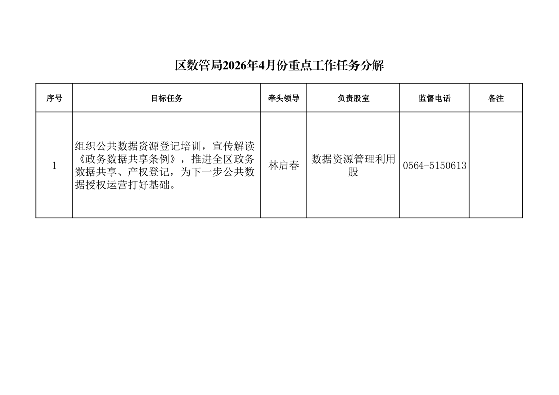 【月度任务分解】区数管局2026年4月份重点工作任务分解