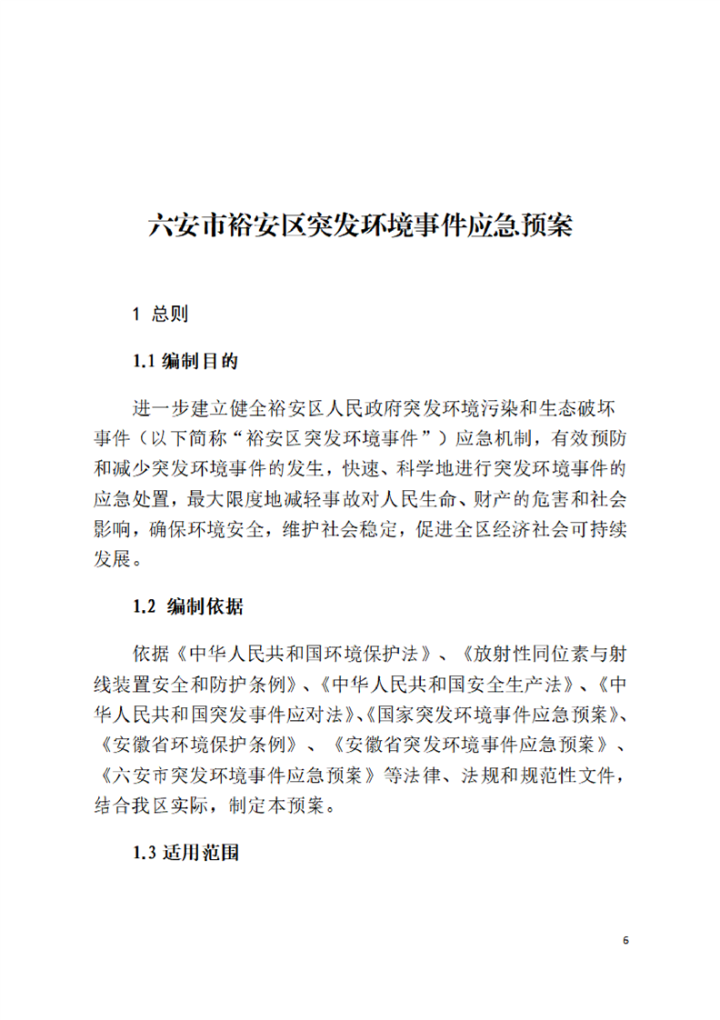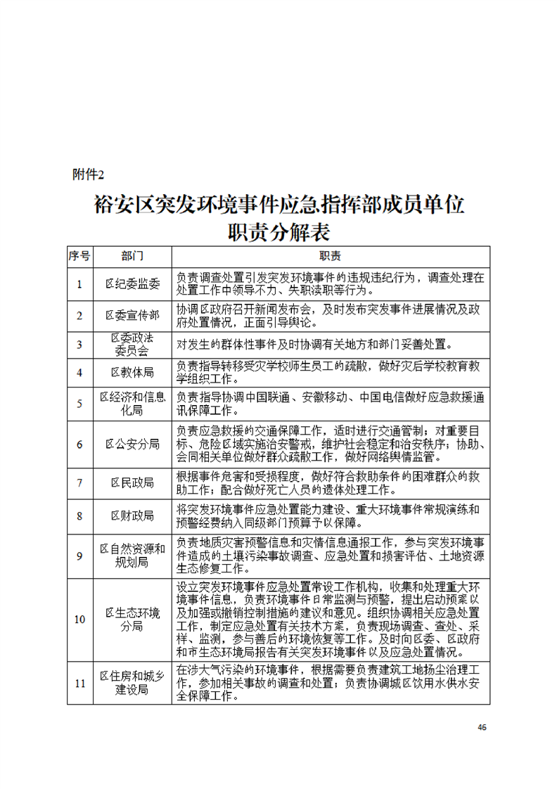 【突发环境事件】裕安区突发环境事件应急预案