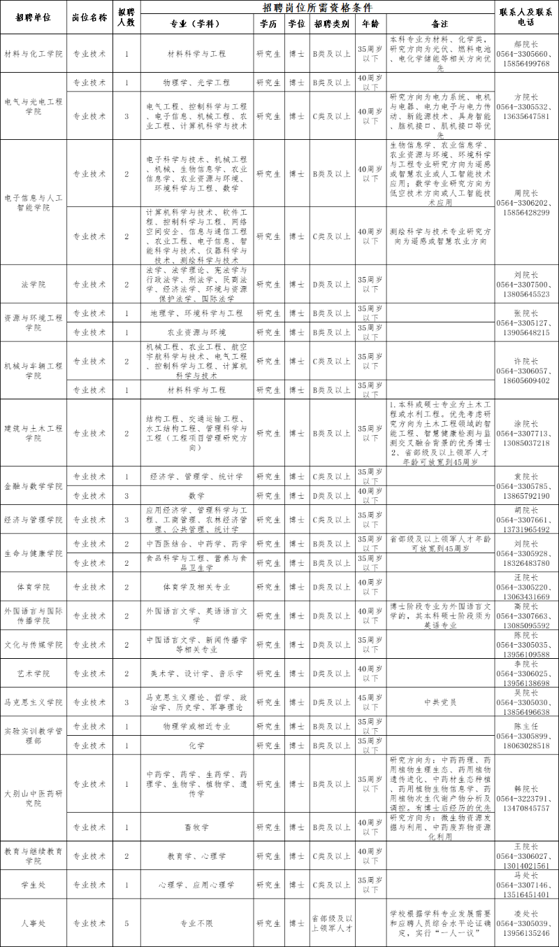 (一)我校招聘工作按人事考试规则和保密、回避等规定组织实施,学校纪检监察部门全程参与监督,并接受社会及有关部门的监督,监督电话:0564-3306173。