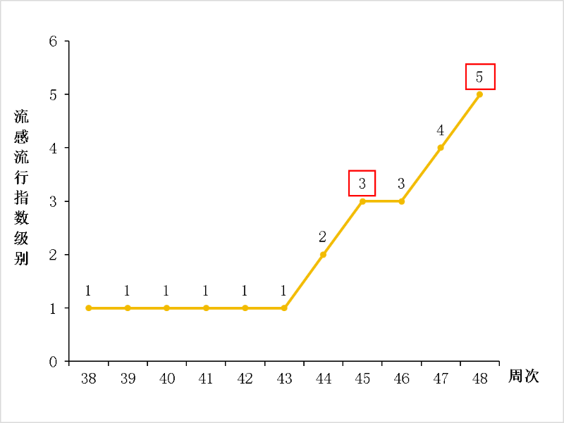 安徽省流感流行等级已于2025年第45周由第2级提升至第3级,标志着进入流感活跃期。2025年第48周(11月24日—11月30日),流感活动将达到高水平,公众感染风险增高。