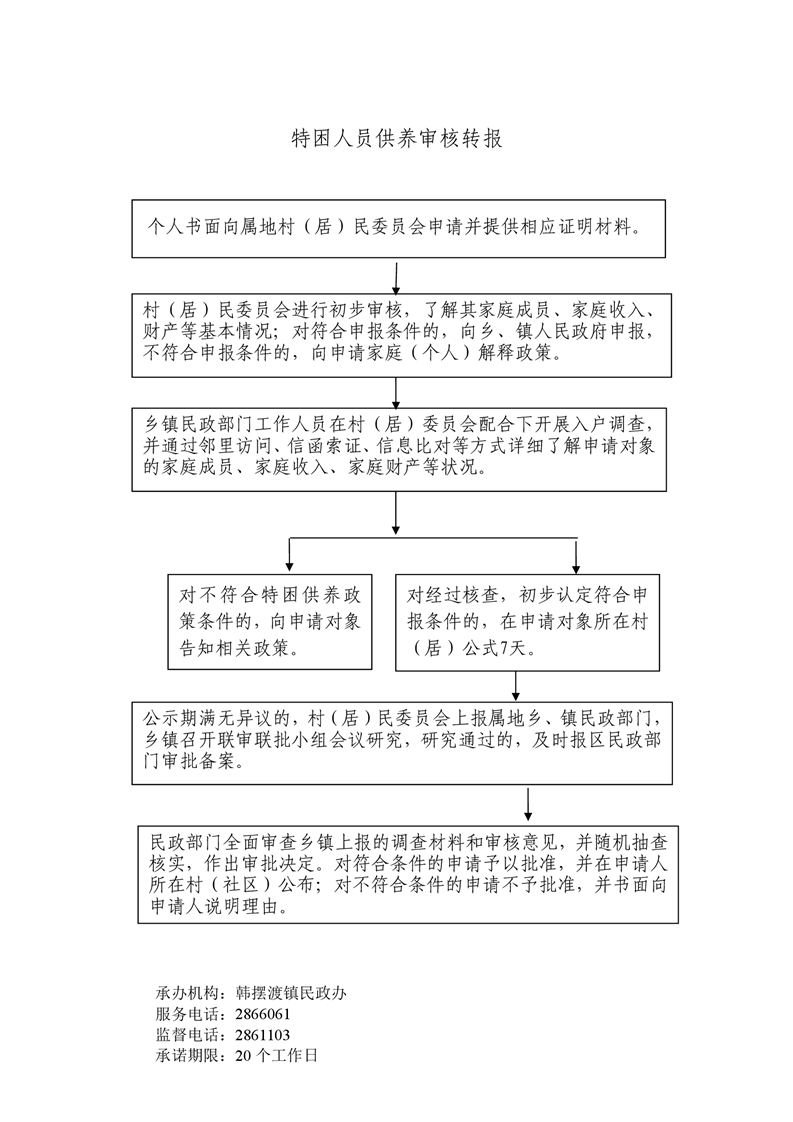 裕安区韩摆渡镇特困人员供养审核转报工作运行流程图