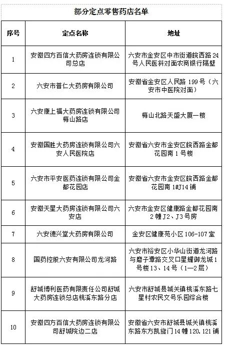 六安市“双通道”定点医院