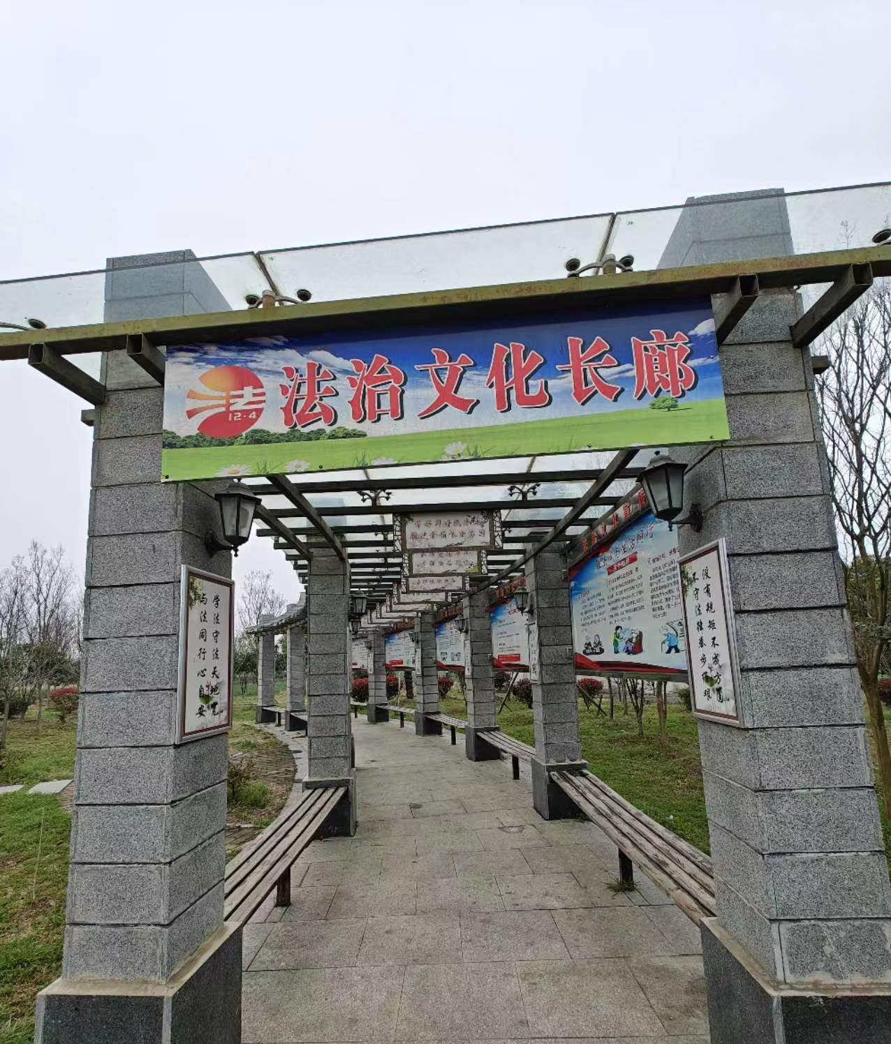 石婆店镇法治文化广场位于石婆店镇新时代文明实践站旁,占地约800平方米, 设置了法治文化广场立牌、法治文化长廊、法治一面墙、法治典故牌、法治宣传牌和法治道旗等法治宣传标识标牌, 通过营造浓郁的法治文化氛围,在为群众提供休闲娱乐功能的同时,在潜移默化中将法治理念传播给受众群体,使广大群众在日常生活、娱乐、休闲、健身过程中获得法律知识,受到法治教育,从而进一步弘扬法治精神,强化法治理念。