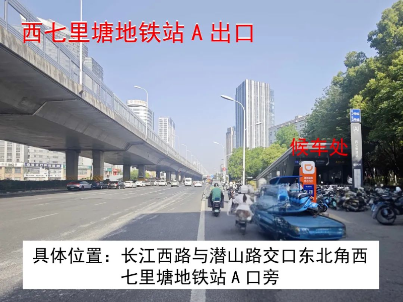 ---蜀山区长江西路与潜山路交口东北角西七里塘地铁站A口旁。