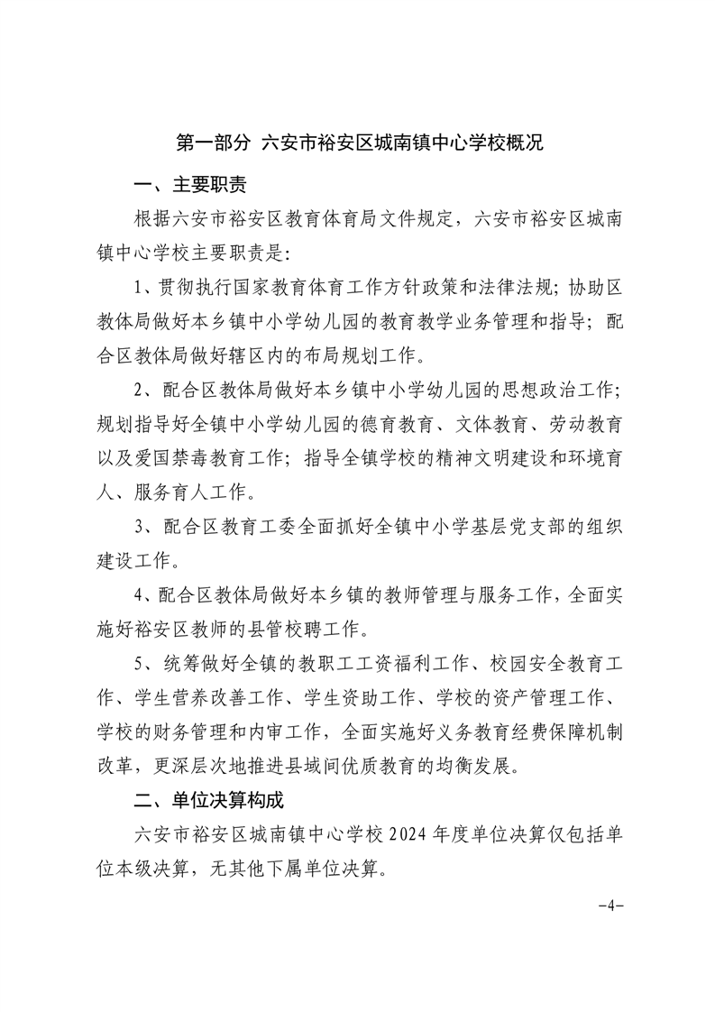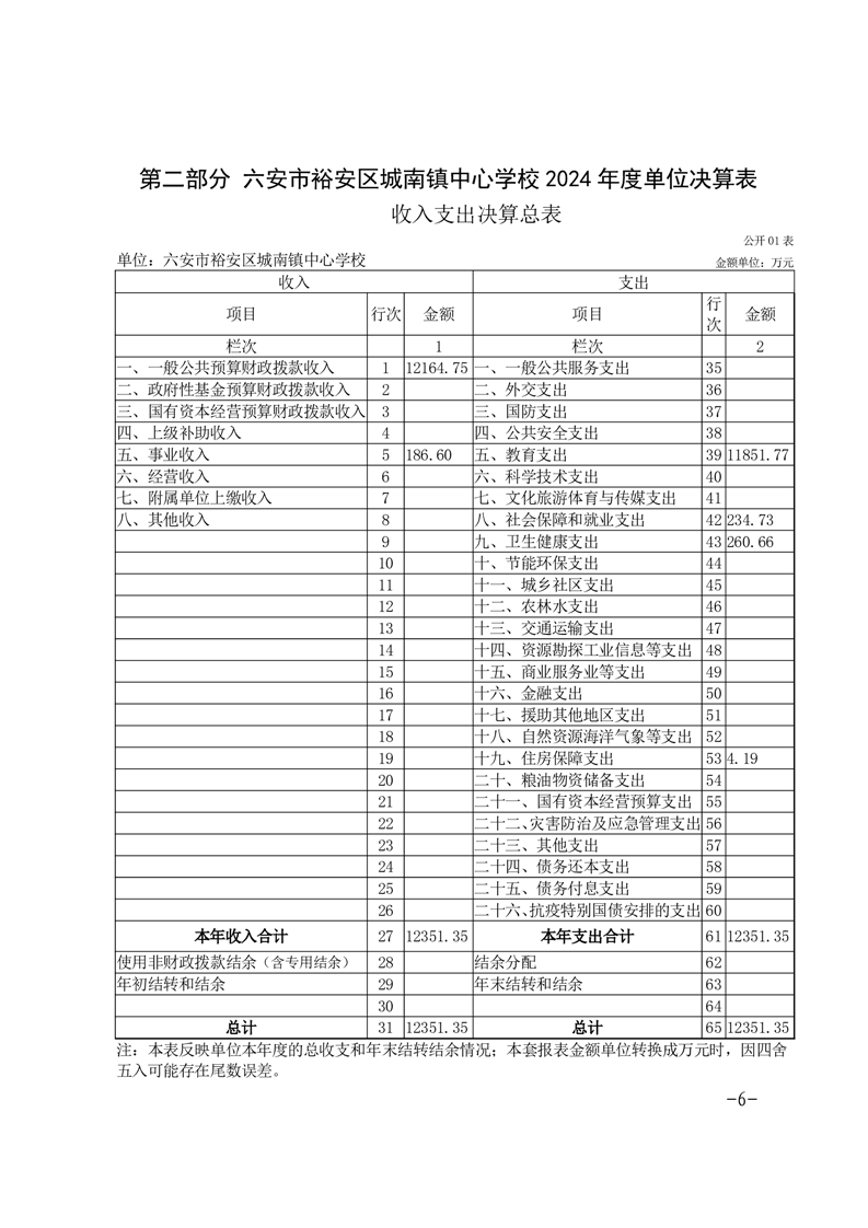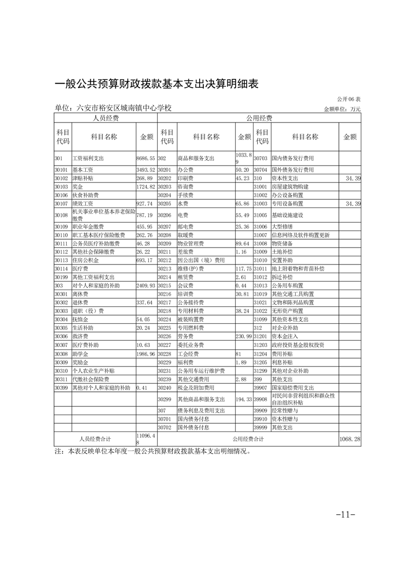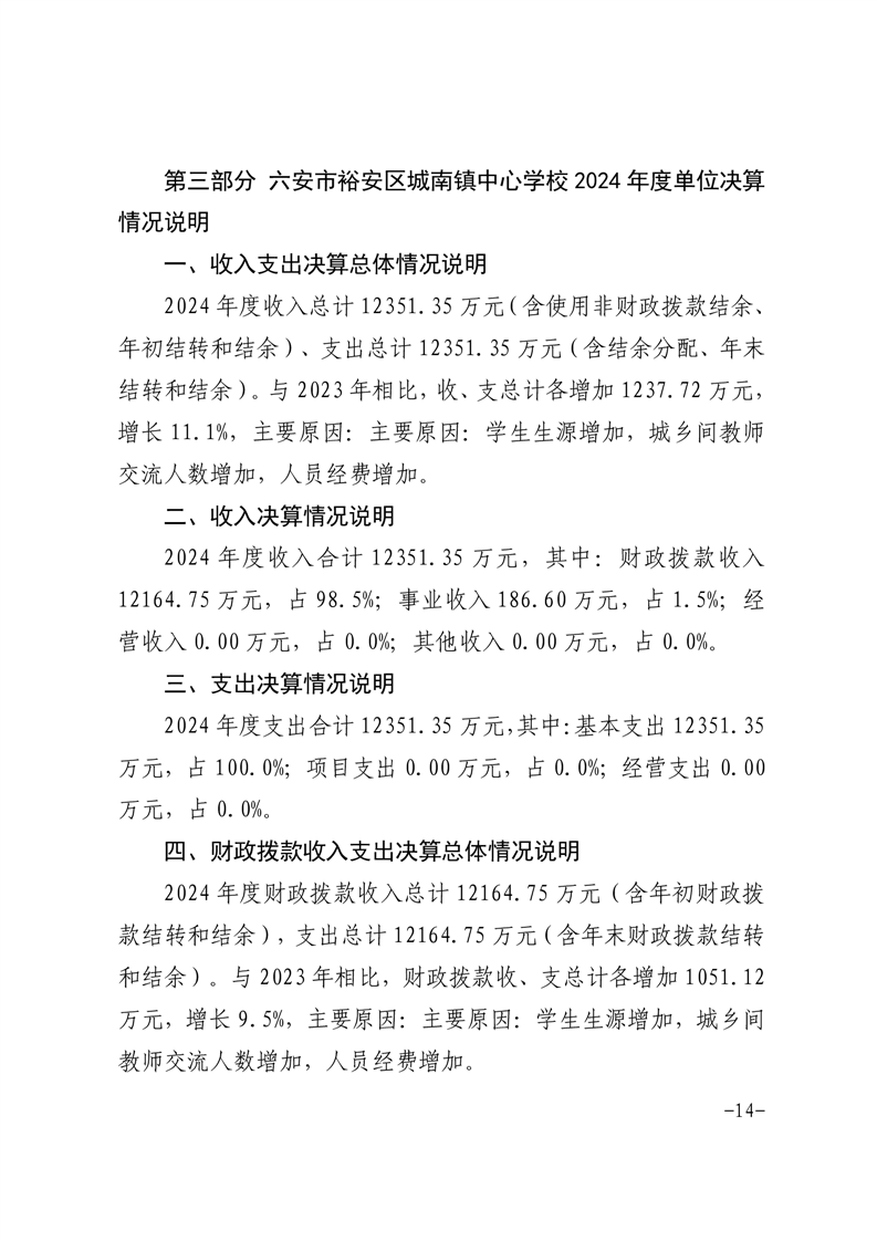 | 名 称: | 【年度经费决算】六安市裕安区城南镇中心学校2024年单位决算公开 | ||