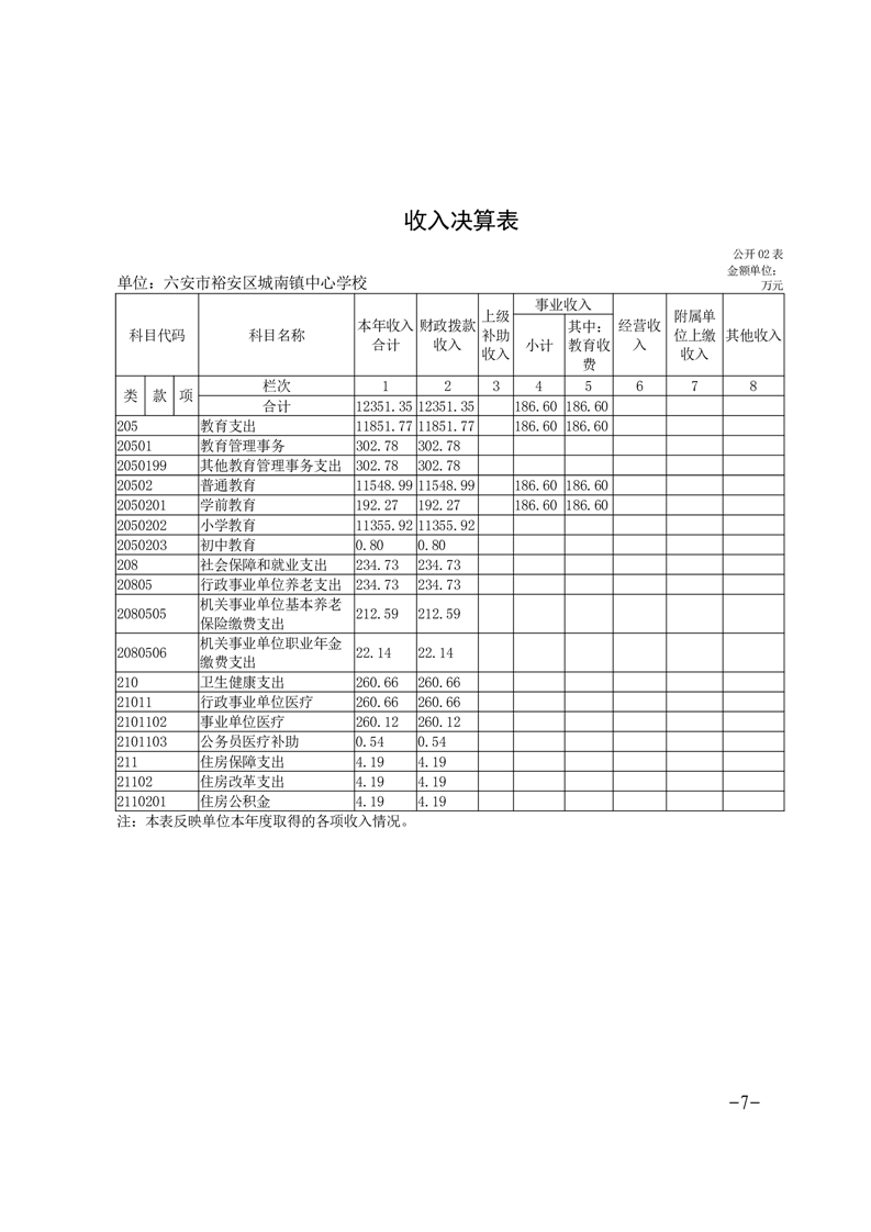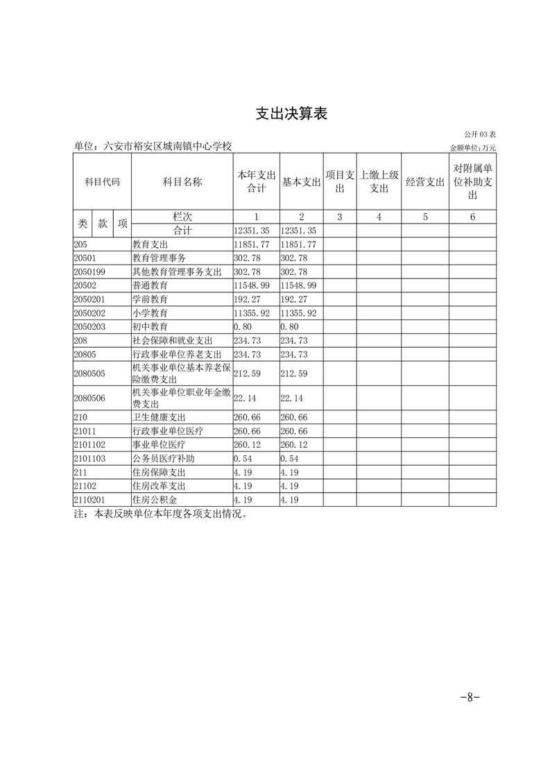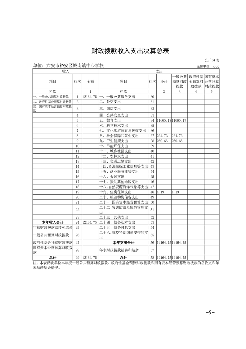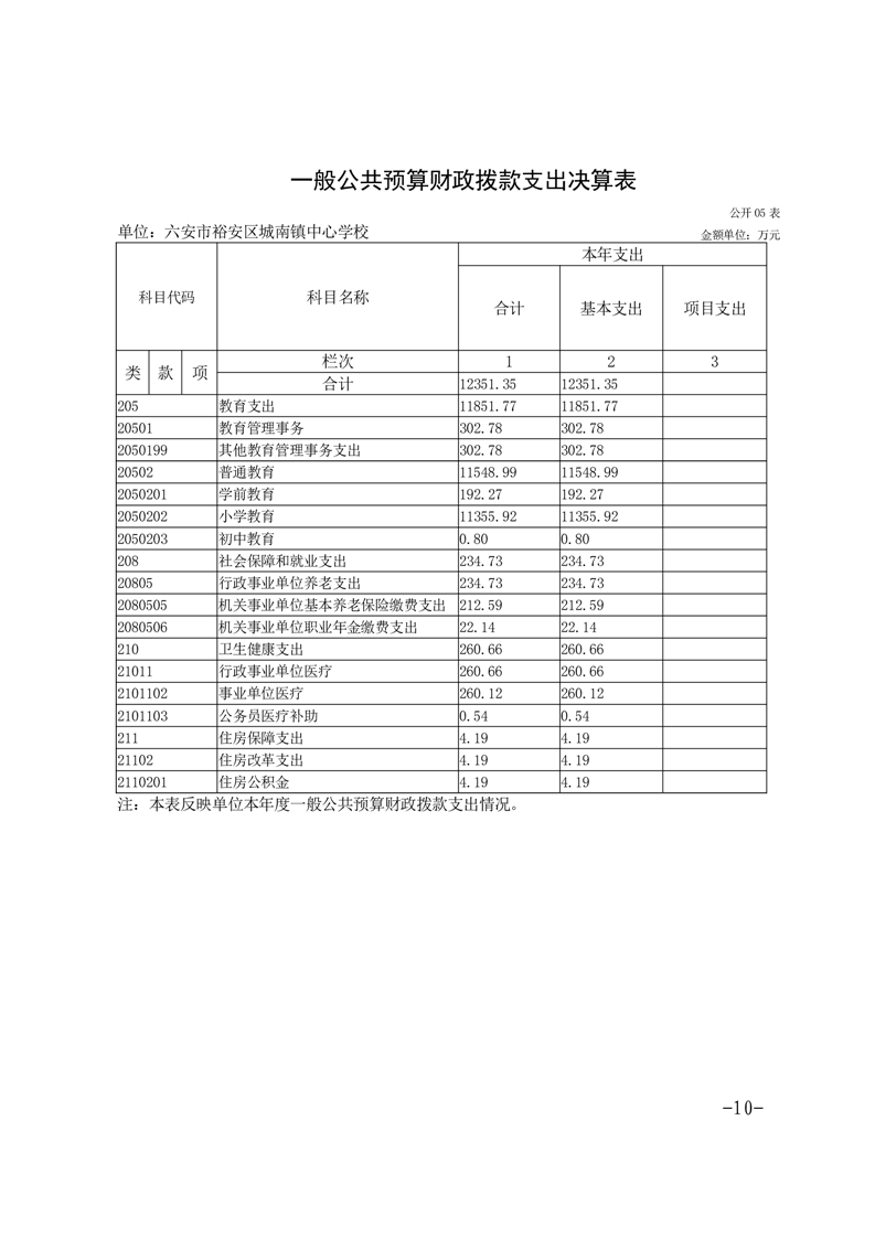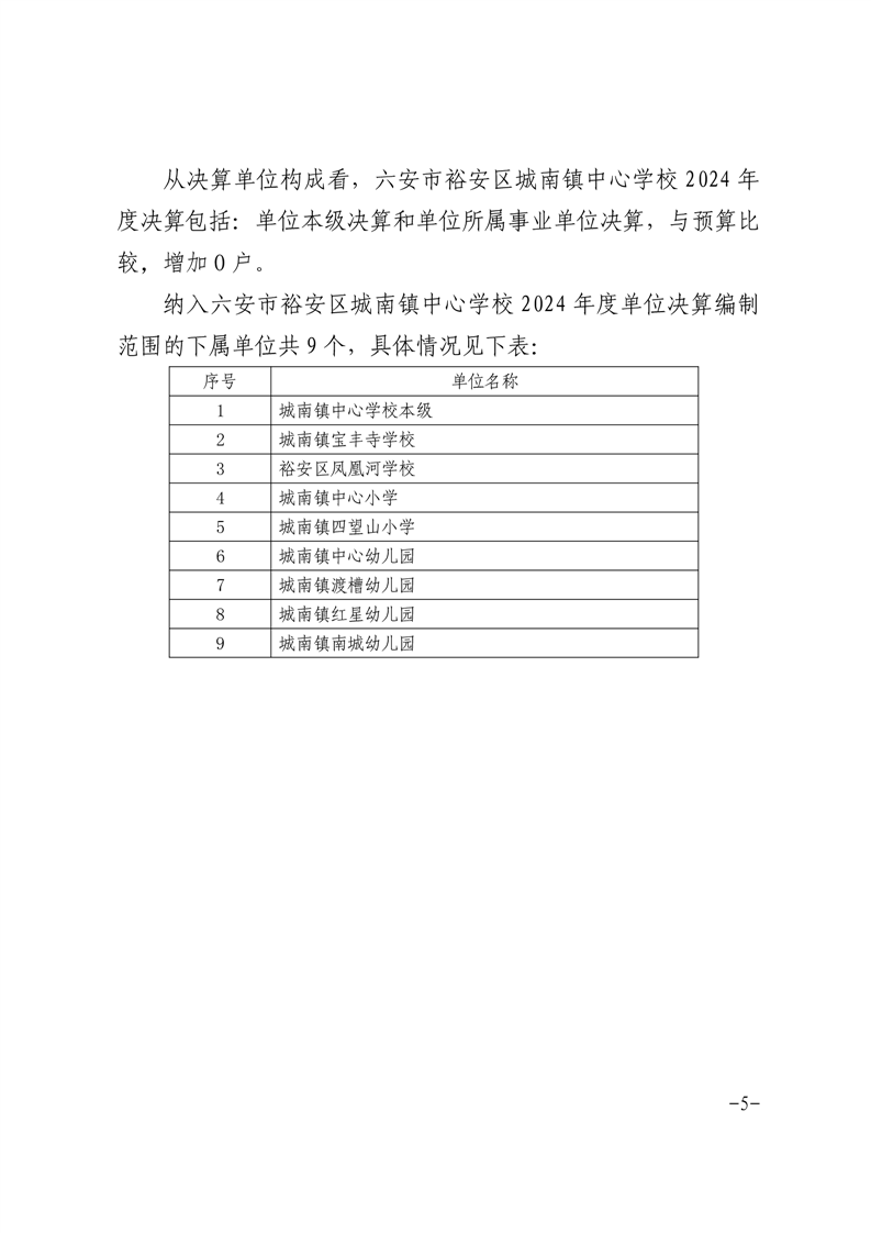 | 名 称: | 【年度经费决算】六安市裕安区城南镇中心学校2024年单位决算公开 | ||
