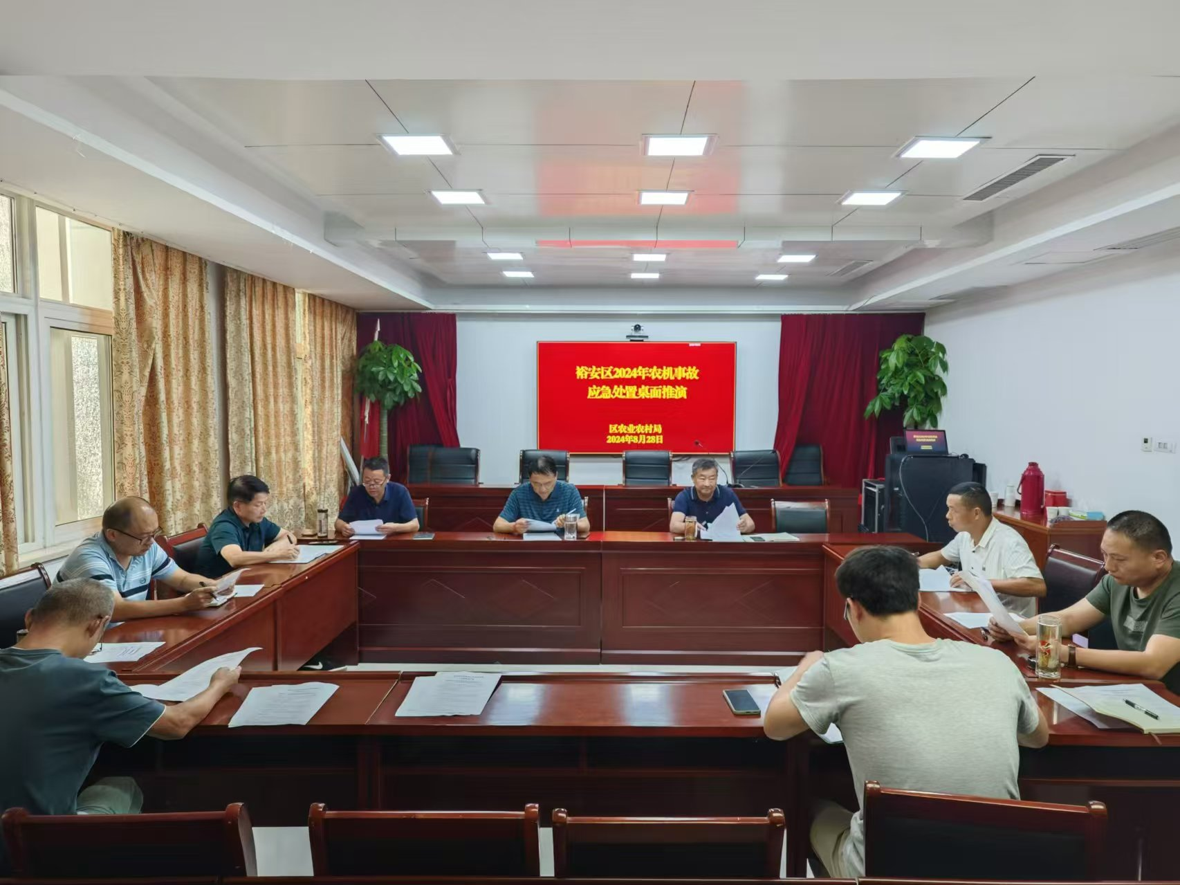 8月28日上午,裕安区农业农村局组织区农机管理服务中心和区农业综合行政执法大队相关人员开展农机事故应急处置预案桌面推演。通过桌面推演,旨在增强道路外的农机事故应急处置预案的可操作性,进一步提高农机监理和农业执法人员应对农机事故应急救援的快速反应能力、应急处理能力和协调作战能力。