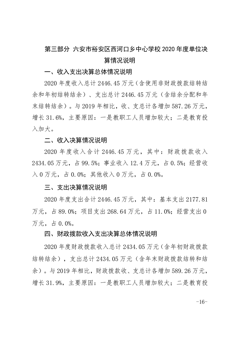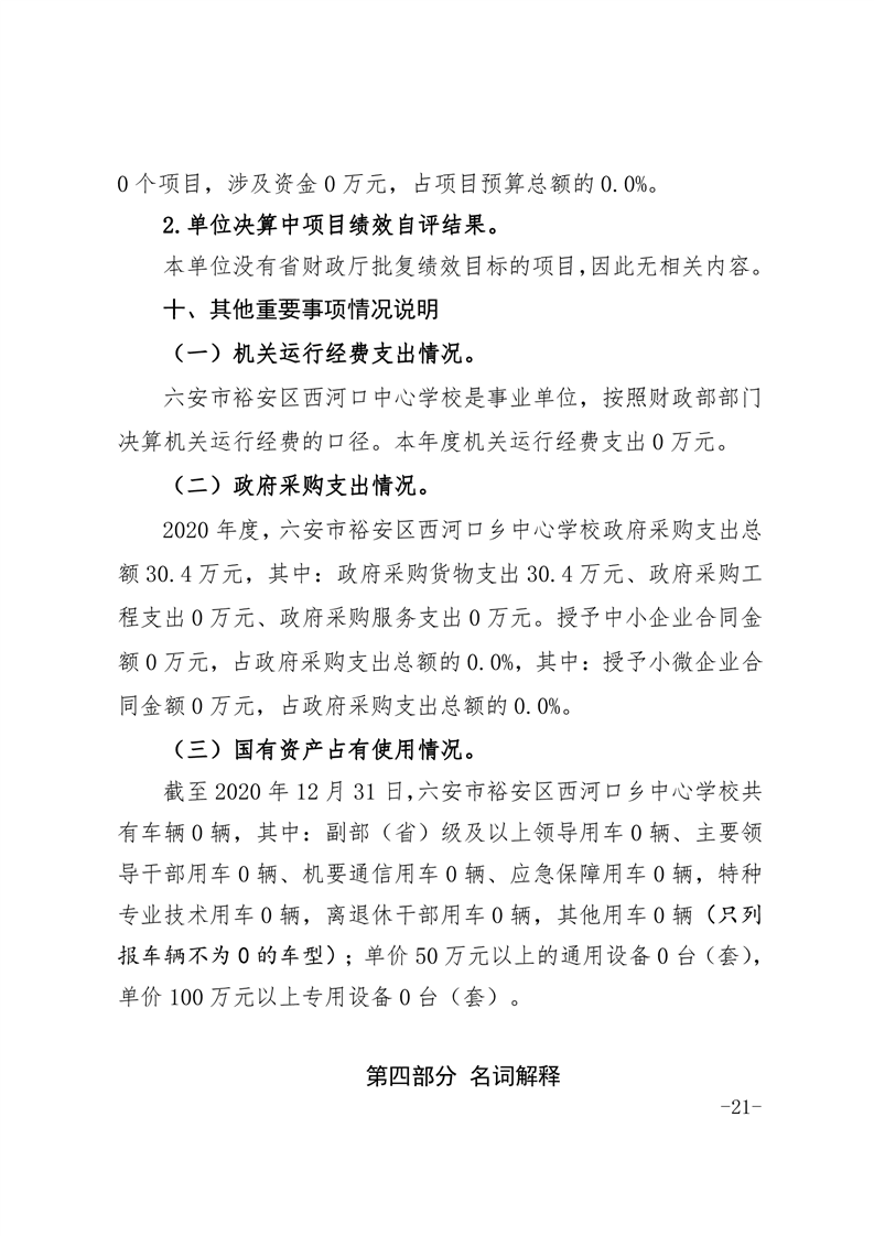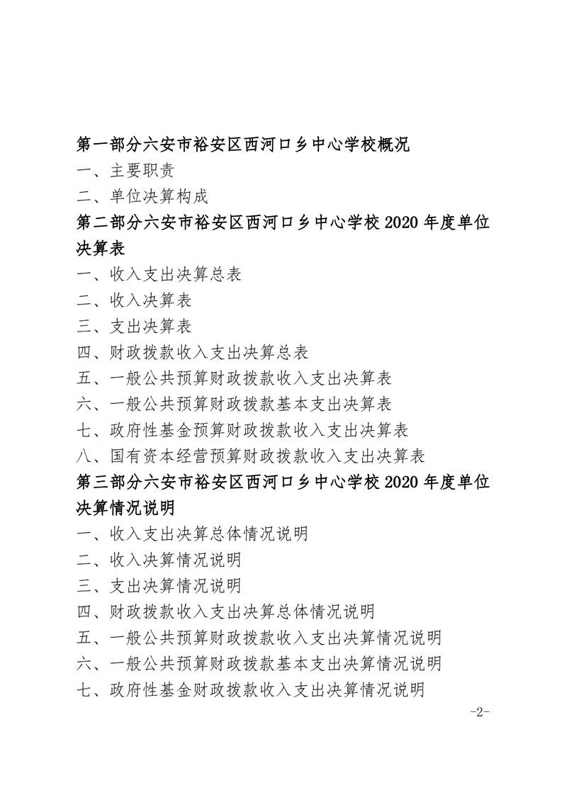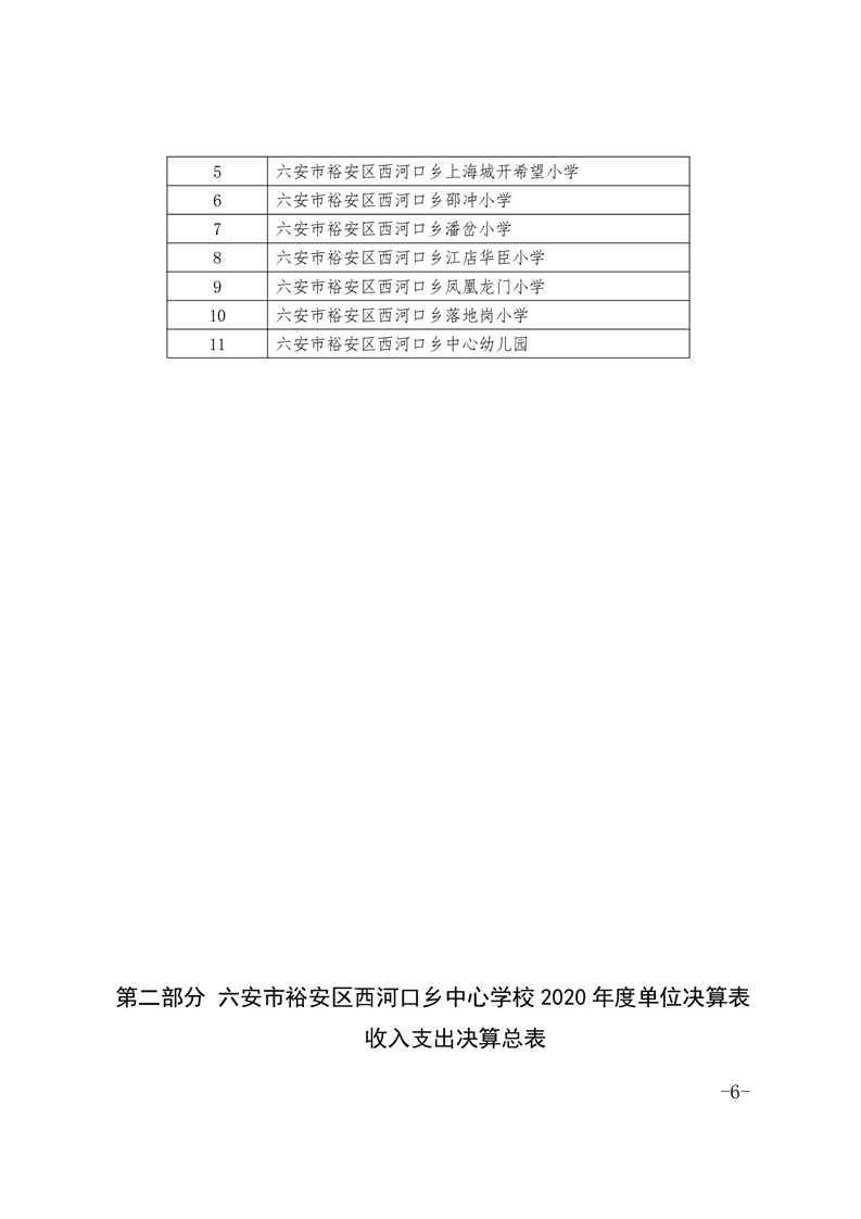 | 名 称: | 六安市裕安区西河口乡中心学校2020年决算公开 | ||