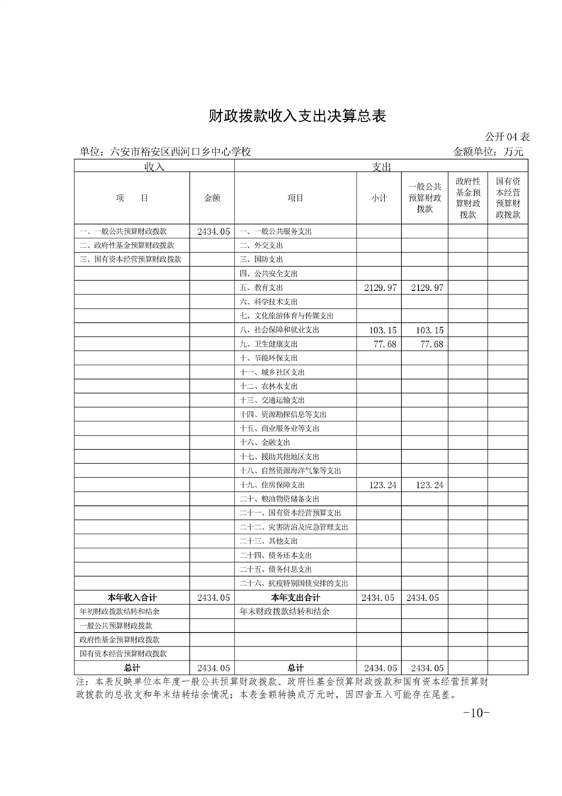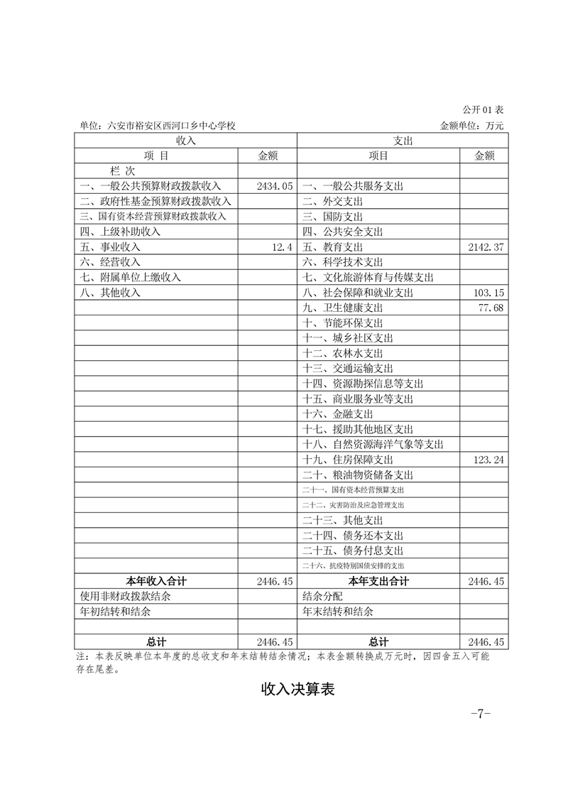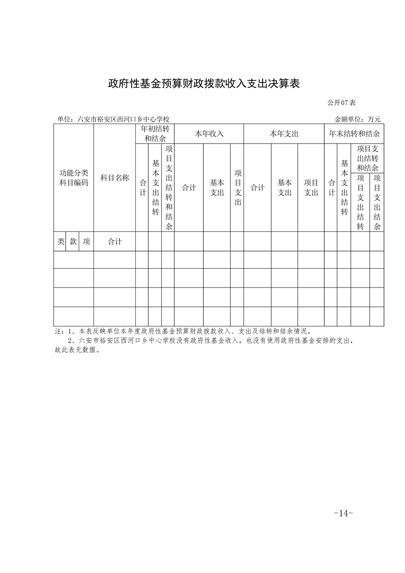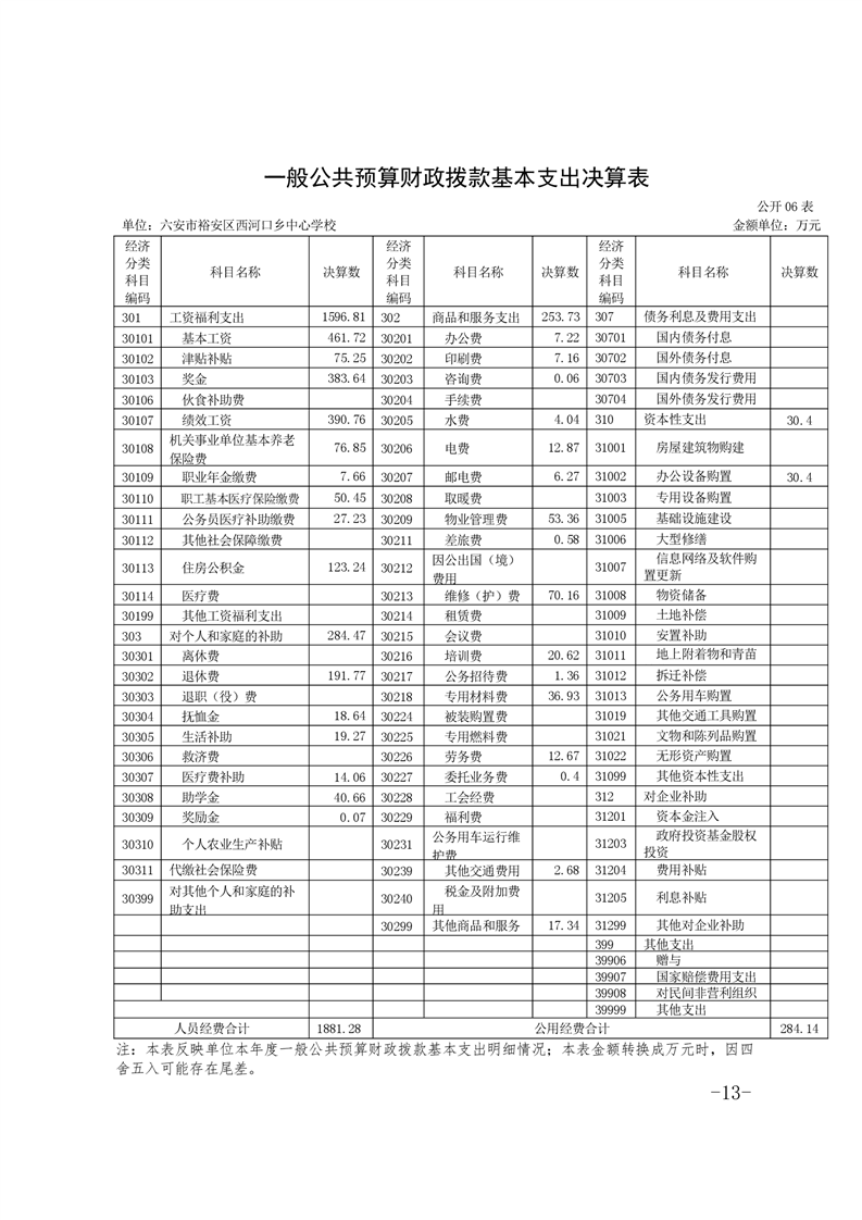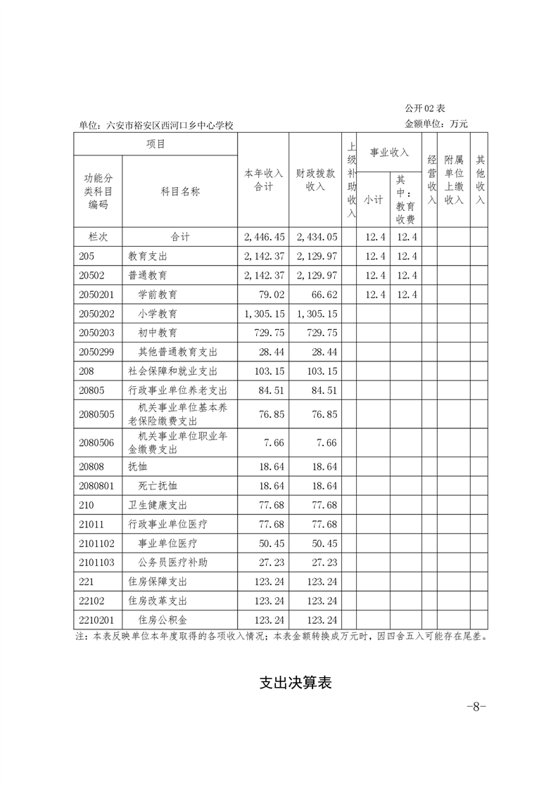 | 名 称: | 六安市裕安区西河口乡中心学校2020年决算公开 | ||