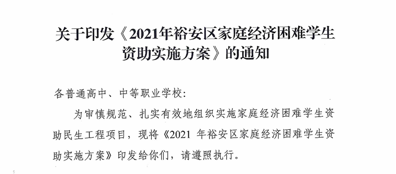 | 名 称: | 【政策与标准】裕安区家庭经济困难学生资助实施方案(统一城乡义务教育“两免一补”政策)(继续有效) | ||
