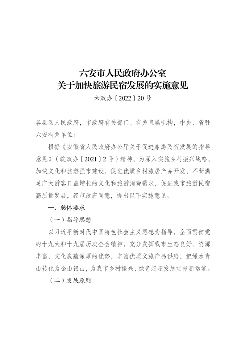 | 名 称: | 六安市人民政府办公室关于加快旅游民宿发展的实施意见 | ||