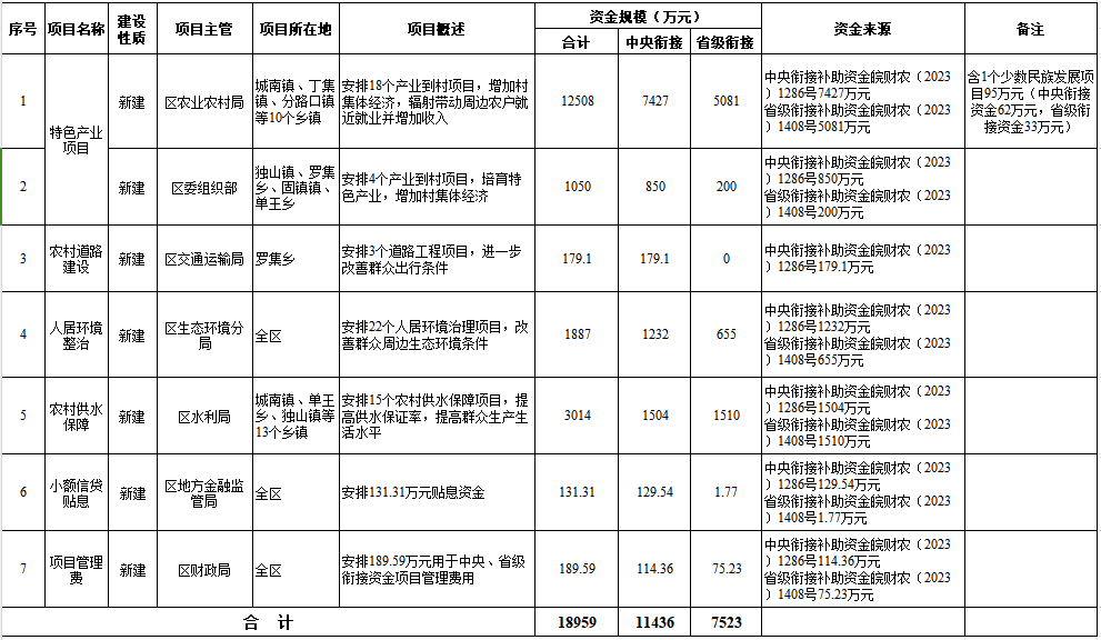 | 名 称: | 【分配结果】裕安区2024年第一批中央、省级衔接资金项目计划分配结果 | ||