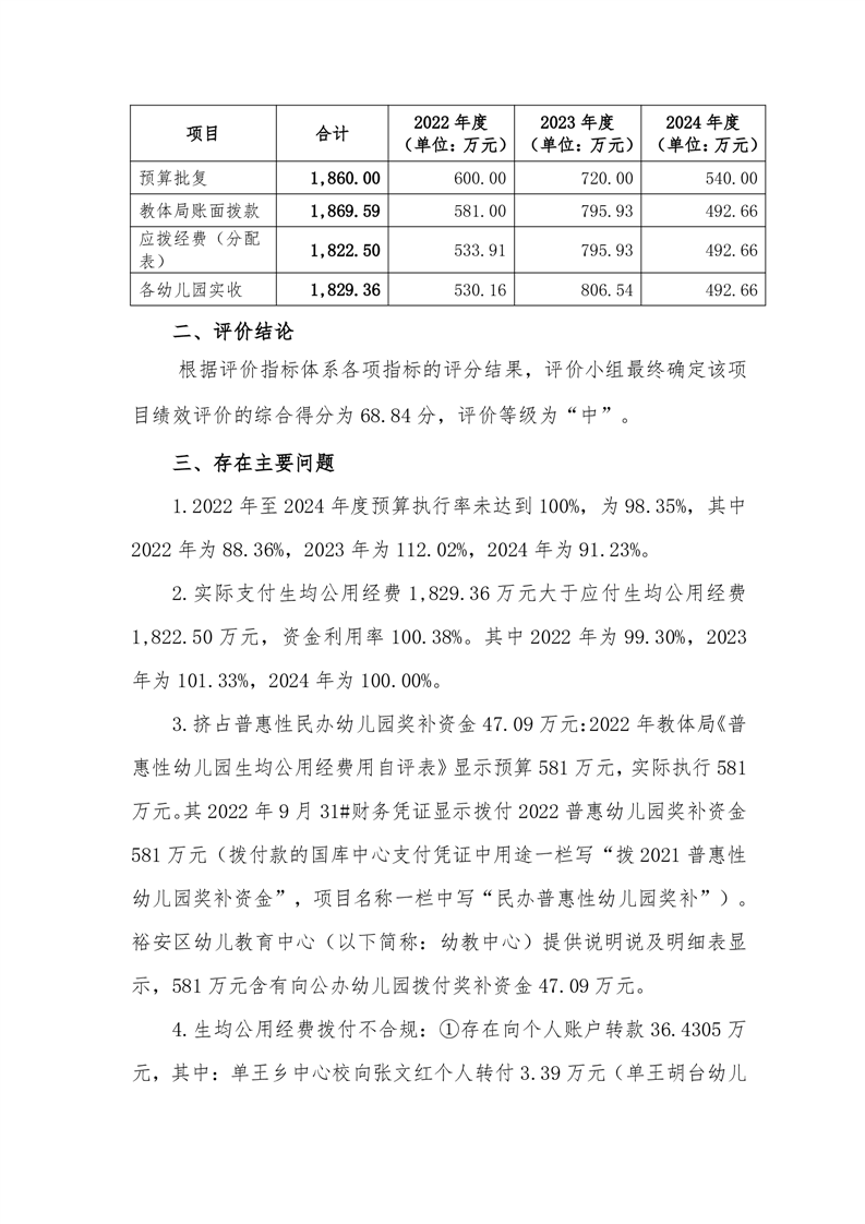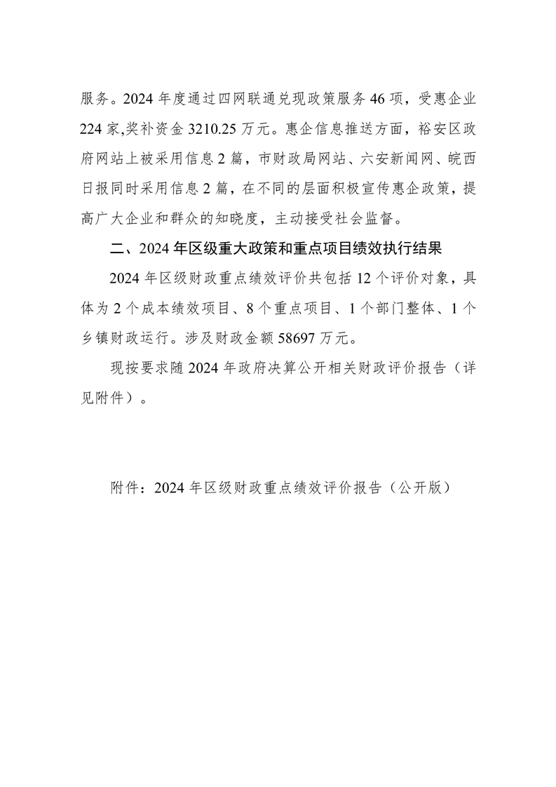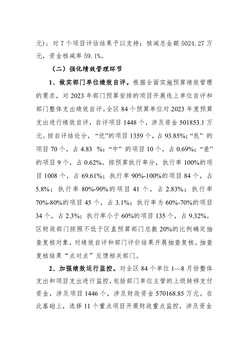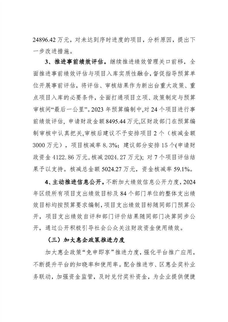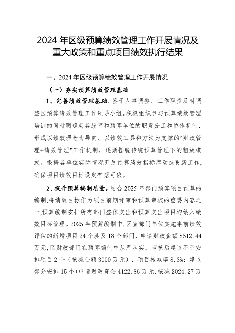 | 名 称: | 2024 年区级预算绩效管理工作开展情况及重大政策和重点项目绩效执行结果 | ||