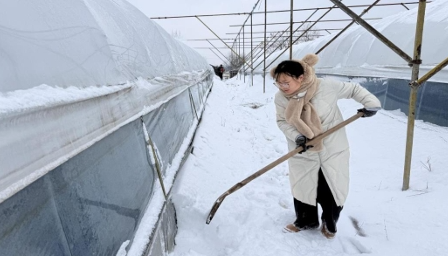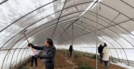 清理大棚顶部及外侧积雪