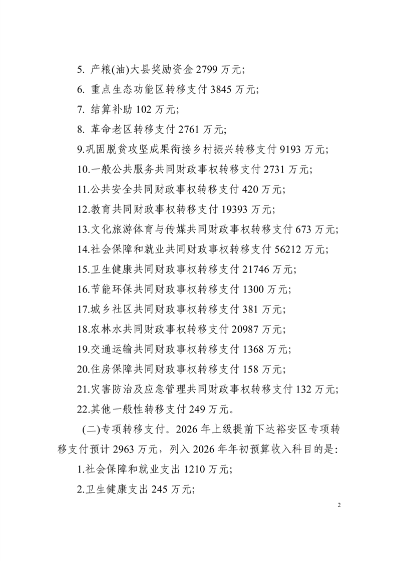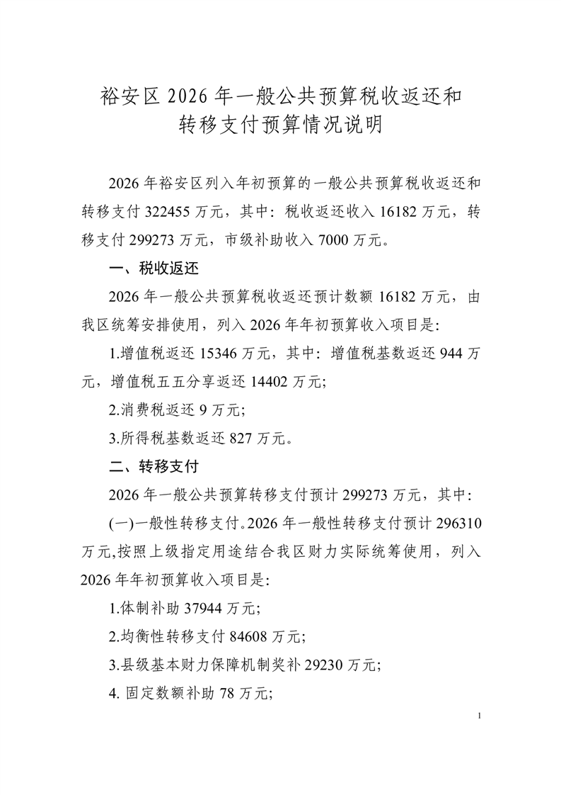 | 名 称: | 裕安区2026年一般公共预算税收返还和转移支付预算情况说明 | ||
