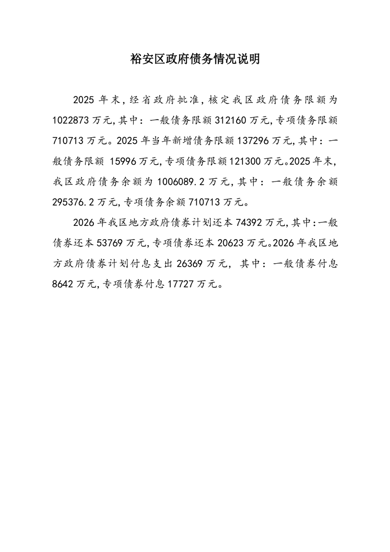 | 名 称: | 裕安区政府债务情况说明 | ||