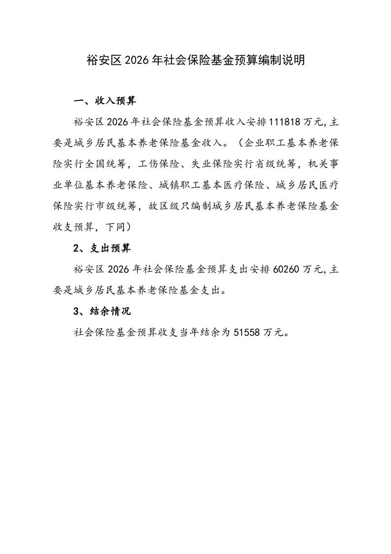 | 名 称: | 裕安区2026年社会保险基金预算编制说明 | ||