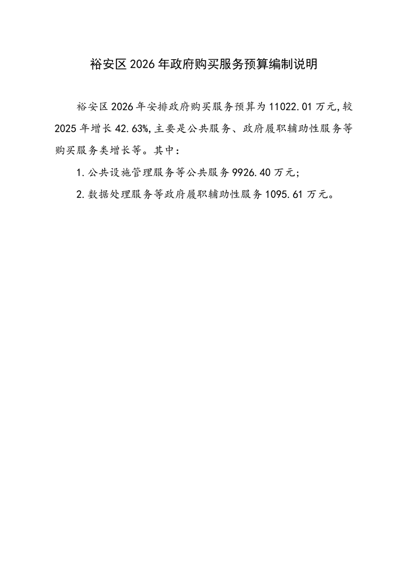| 名 称: | 裕安区2026年政府购买服务预算编制说明 | ||