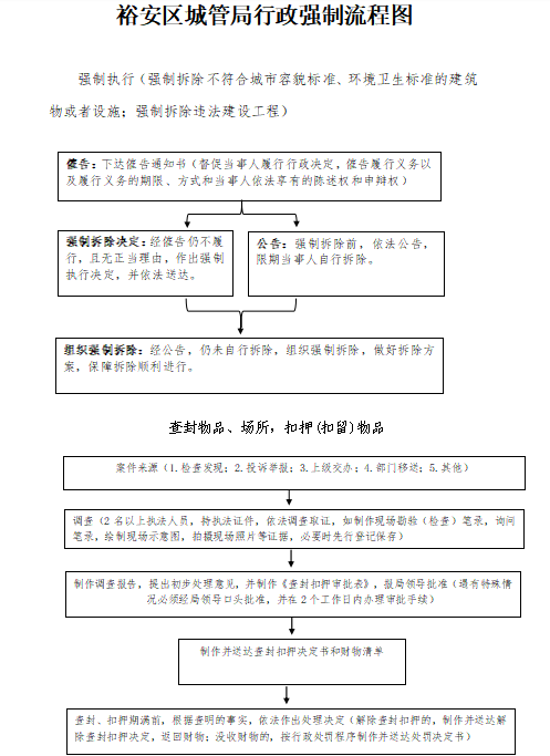 | 名 称: | 【行政强制流程图】六安市裕安区城市管理局行政强制流程图 | ||