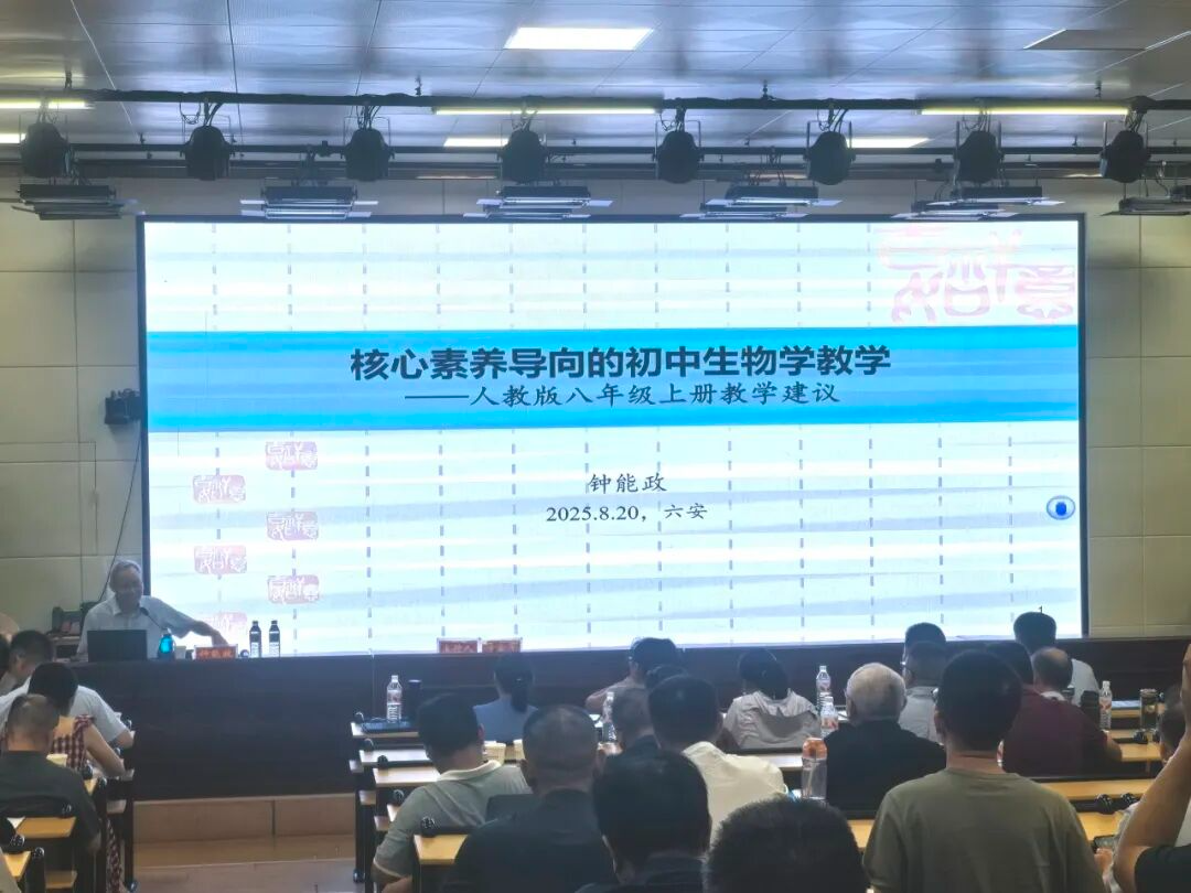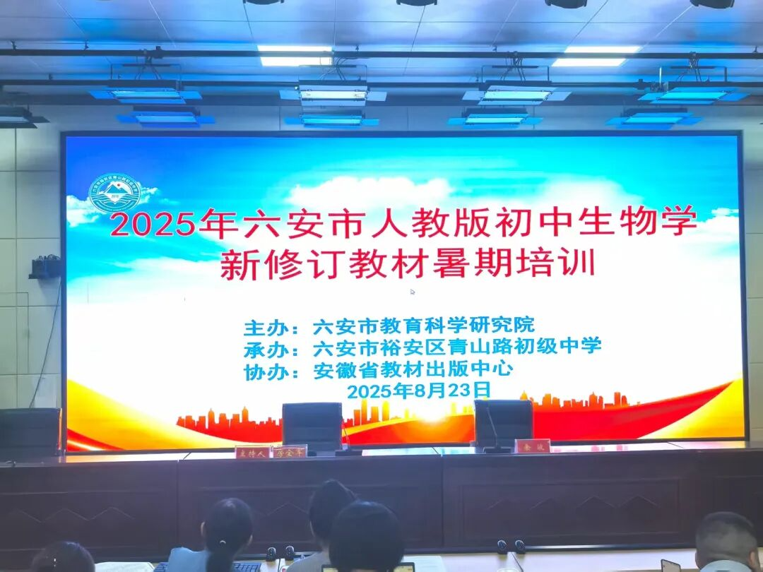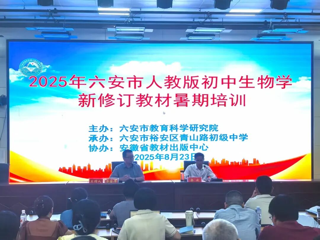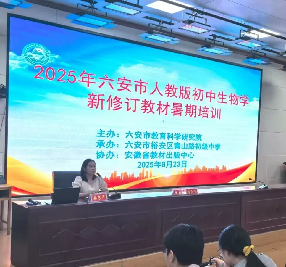 为更新新教材和新课程标准背景下生物学教师的教育理念,助力教师精准把握生物学新教材的精髓,提升教师的教学教研水平,探索生物学教学的新路径,于2025年8月23日在六安市裕安区青山路初级中学的多功能报告厅举行2025年六安市人教版初中生物学新教材暑期培训。本次新教材培训人员由六安市各县区和市属初中的教研员、教研组长和初中生物学的骨干教师组成,共160余人。培训由六安市教科院的生物教研员房全军主任主持。
