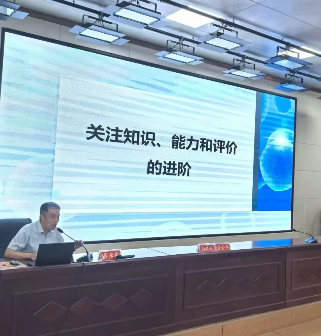 六安市裕安区青山路初级中学的余波校长就本次初中生物学新教材培训的意义作领导致辞。余校长首先指出新教材是教育改革的时代产物,更是国家育人蓝图的重要载体。新教材不仅是教学内容的更新,更是教育理念的重构。最后,余校长动员全体培训教师落实核心素养,深耕课堂,拓宽育人新路径,做区域教育的“点灯人”,共绘素养育人的新画卷。