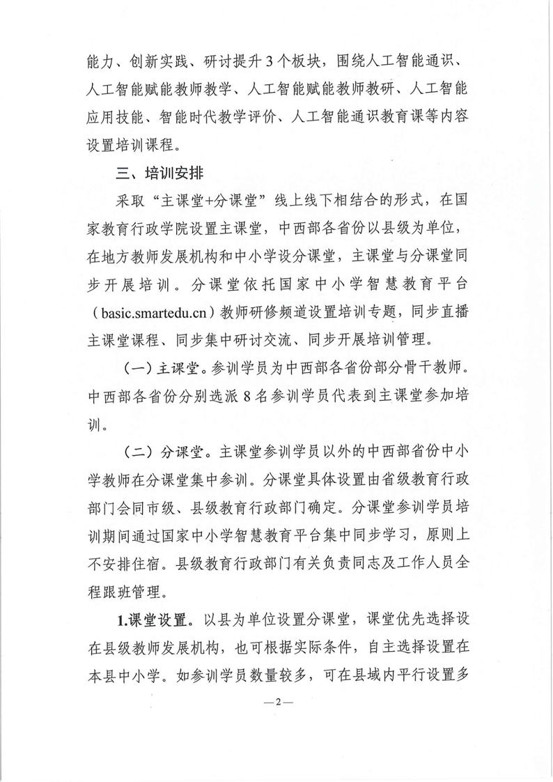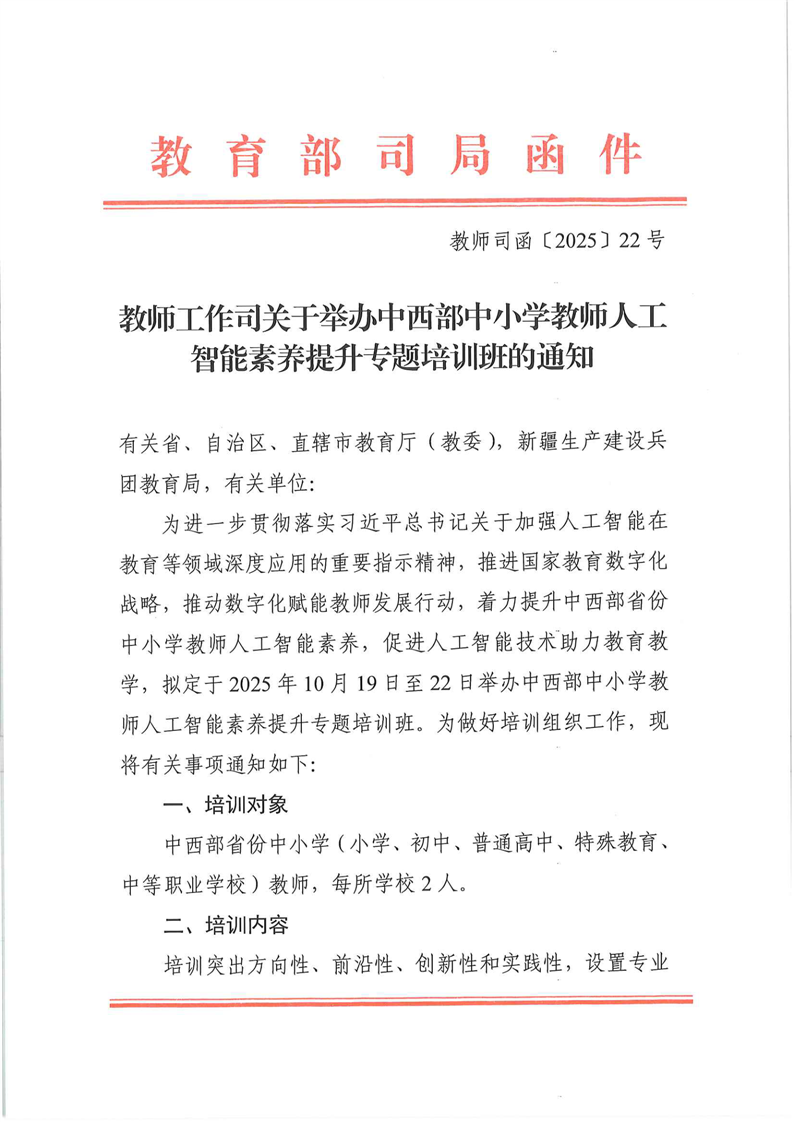 教师工作司关于举办中西部中小学教师人工智能素养提升专题培训班的通知