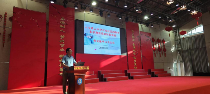 为抓好校园传染病防治工作,强化校园传染病防控意识,2024年5月13日下午,新安镇中心卫生院党支部书记、院长何申发前往六安市第二中学河西校区开展学校传染病防控讲座,全校近3000名师生参加了活动。