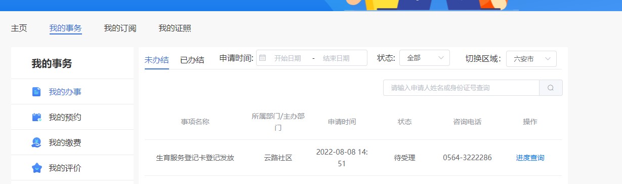 在皖事通线上办理生育登记证,一直没有受理,上面留的电话也打不通