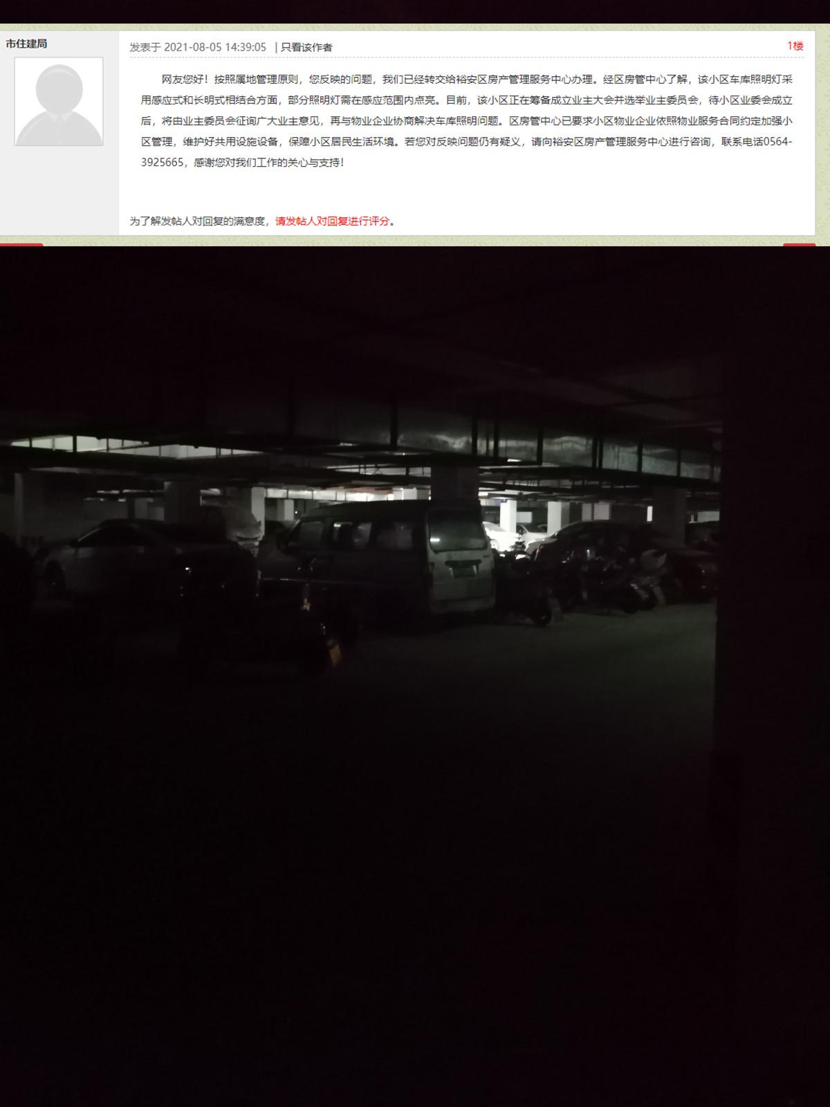 再次关于华邦瑞华园的地下停车黑的吓人的问题