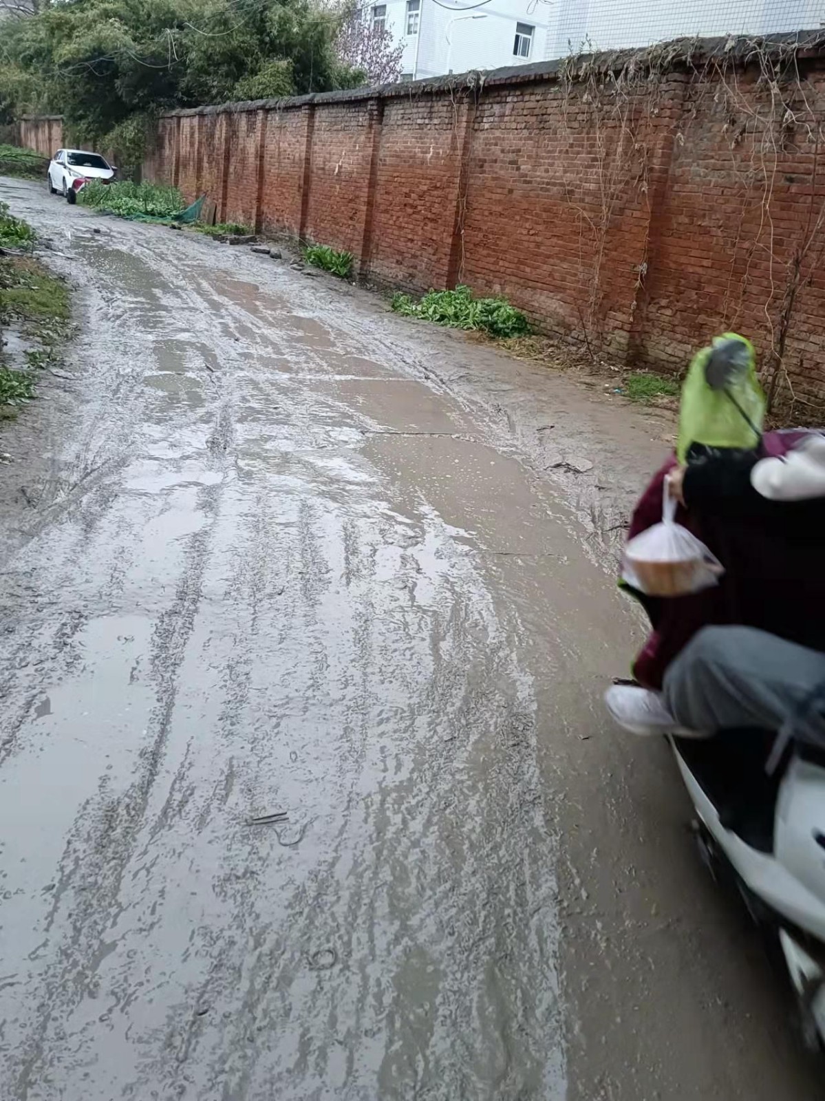 以前我反映过这个问题,但始终没有解决,这条路人流量大,路况太差,一下雨就泥烂路滑,经常有人摔倒,希望有关单位重视,为老百姓做实事,把这条路改善改善。