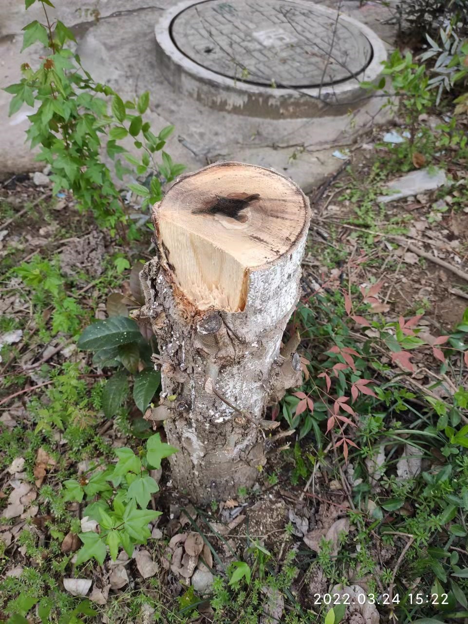 锦绣华府小区"华景苑3号楼"东侧两棵(十几年的鲜活)树木,3月24日上午被从根部拦腰锯断,状况惨不忍睹!这一行为无论是否报批,都可能涉嫌违法?谁管?