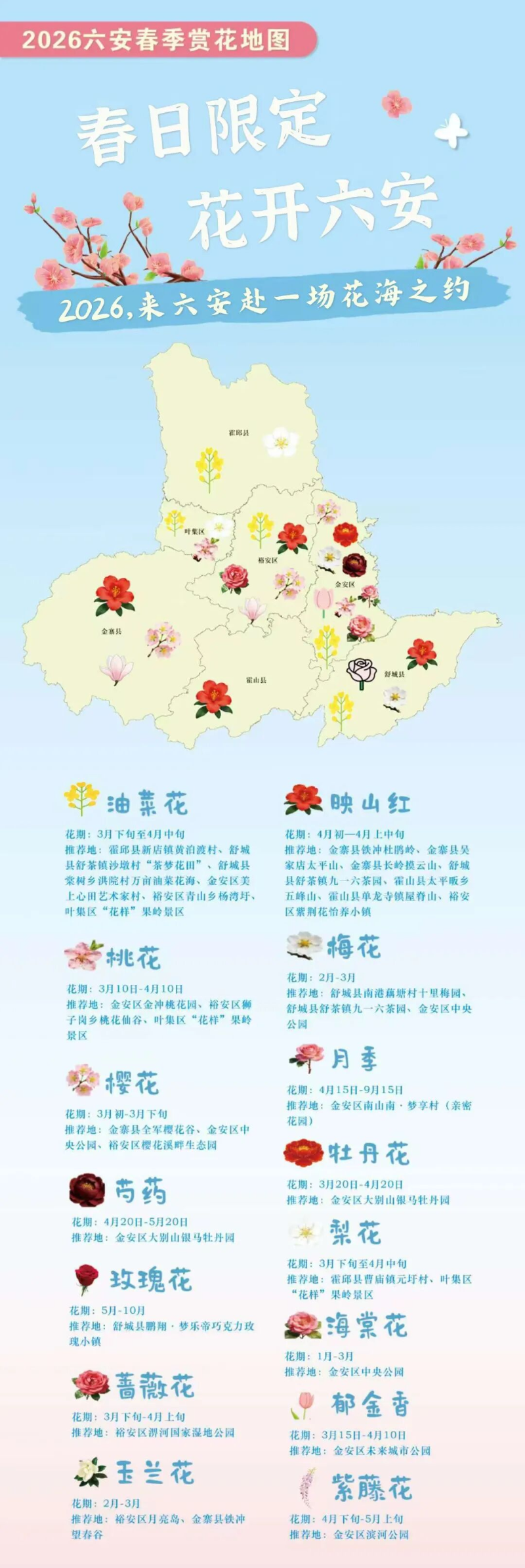赏花期:望春谷2月底-3月初;月亮岛3月中下旬