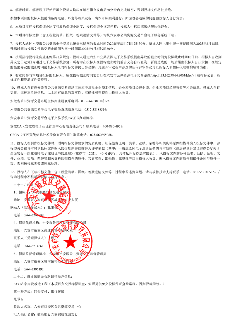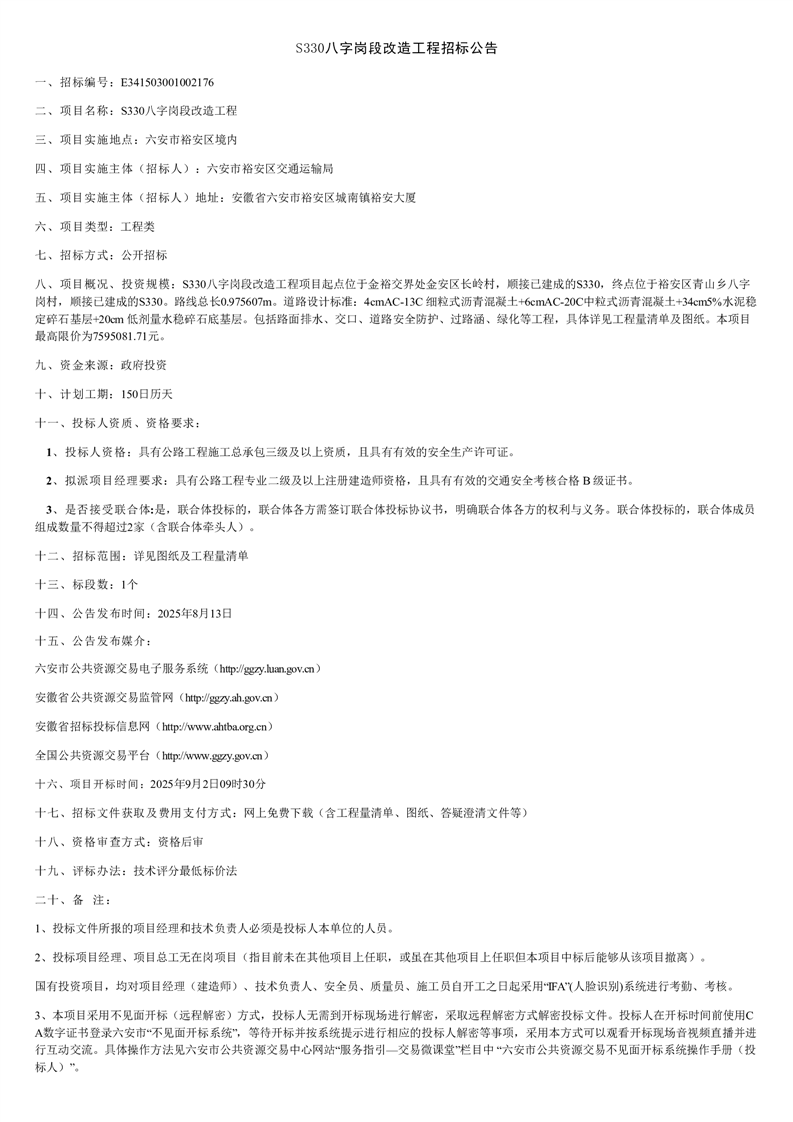 S330八字岗段改造工程项目招标公告