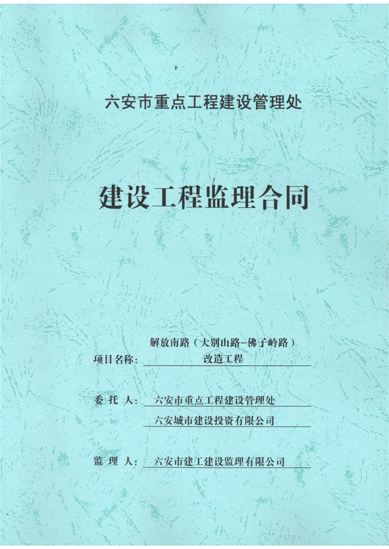 解放南路(大别山路-佛子岭路)改造工程建设工程监理合同