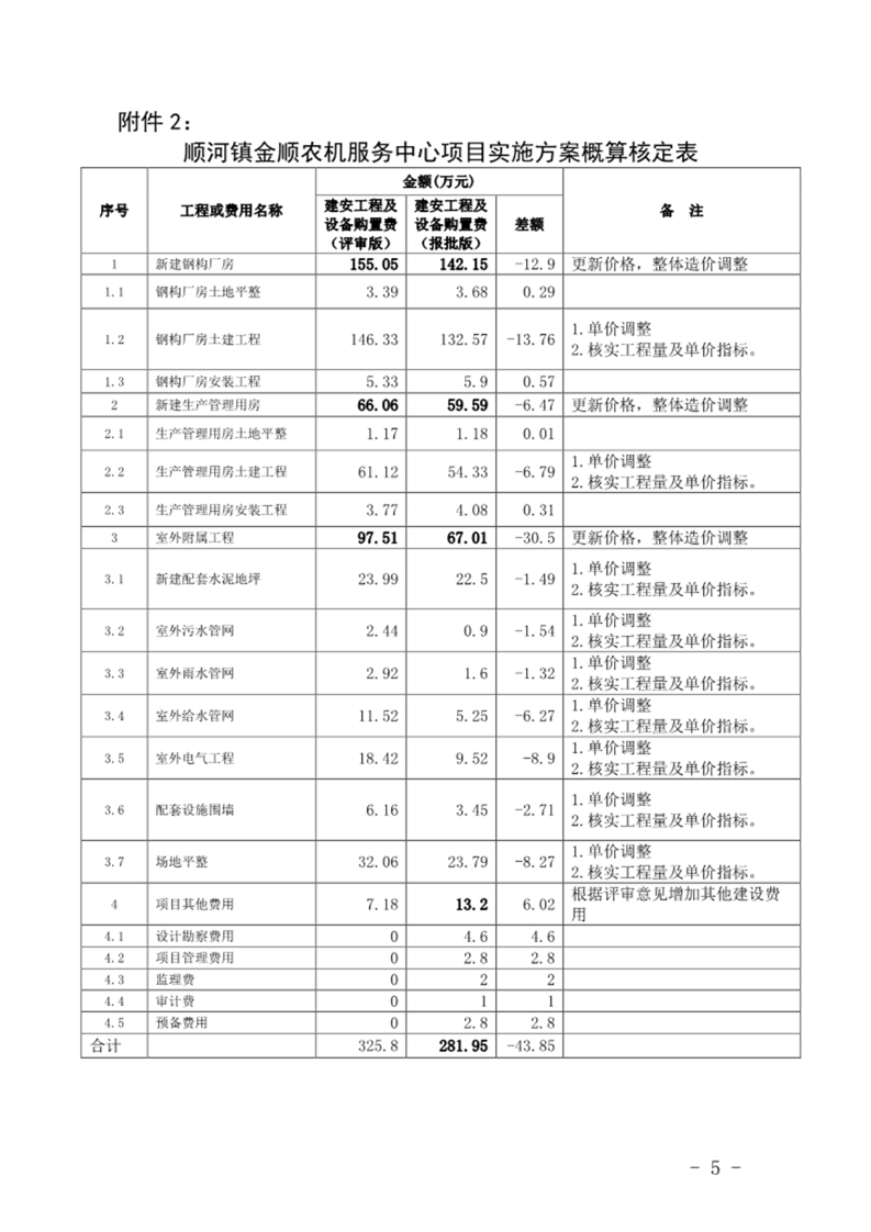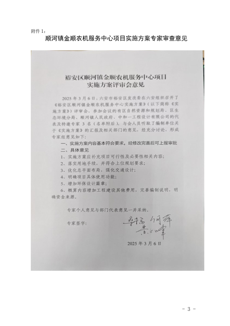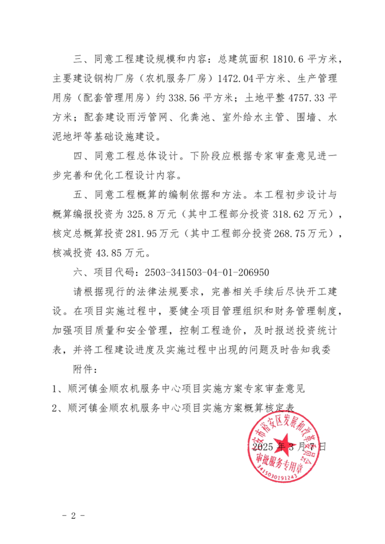 顺河镇金顺农机服务中心项目实施方案的批复