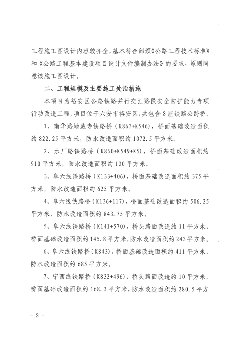 裕安区公路铁路并行交汇路段安全防护能力专项行动改造工程施工图设计的批复