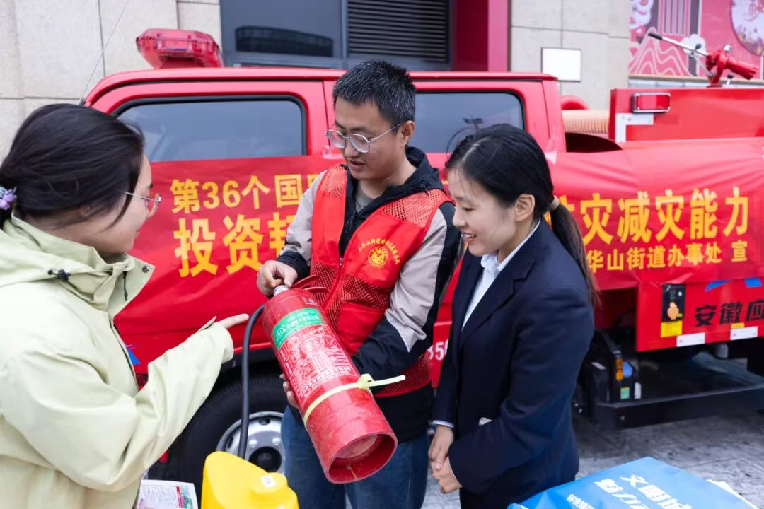 上午九点,小华山街道六安百大购物中心恒生店门前广场人头攒动。志愿者们早早就位,悬挂起宣传标语,摆放好展板、宣传册和各类应急器材。活动现场,志愿者们耐心细致地向过往居民讲解灭火器的使用方法,并邀请群众动手操作。广场上设立的咨询台前围满了群众,志愿者们结合秋冬季火灾特点,详细介绍各类灾害的特点、危害及应对措施。“通过居民身边事,如用电用气安全、灭火器和消防栓的使用,教会大家增加一些自己身边的防灾减灾技能,提升大家防灾减灾意识。”小华山街道恒生社区工作人员宋承攀说。