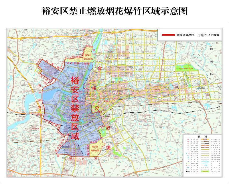 一、“新安镇徐渡中心路--X017县道--兴隆红旗路--松柏路--西外环路(规划)--合武高铁(规划)--淠河”合围区域和“金裕大道--蕴山路--紫园村红店组--紫园村粉坊组--紫园村新村组--紫园村红坎组--枫林路(规划)”合围区域禁止燃放烟花爆竹。