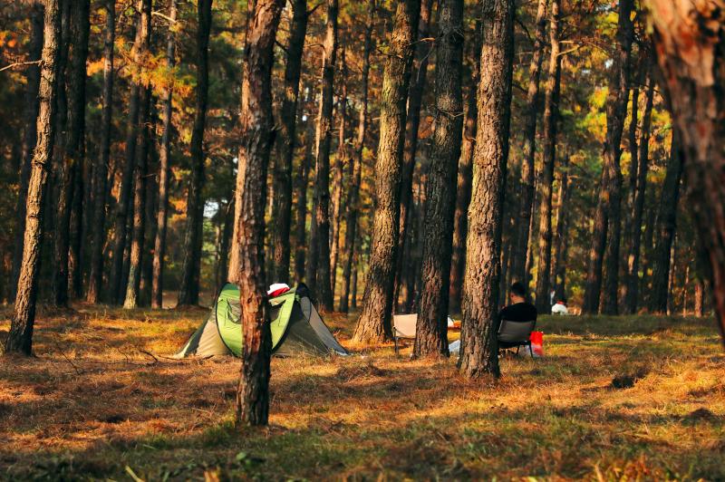 11月2日,裕安区境内的横河岭万亩松林秋意已浓,一眼望去,深深浅浅的黄绿交错,三两游人搭起帐篷,呼吸着天然氧吧,金色的阳光洒落其间,勾勒出一幅宁静惬意的自然画卷 。