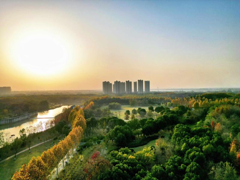2025年12月,六安市裕安区凤凰河公园的初冬景致暖意尽显。航拍视角下,园内林木虽入冬季,仍晕染着黄绿交织的斑斓余韵;澄澈河畔步道蜿蜒静谧,暖阳倾洒间河水泛着粼粼波光,远处现代楼宇与自然生态景致相映成趣,勾勒出城市休闲空间的冬日宜人风貌。(陈睿)