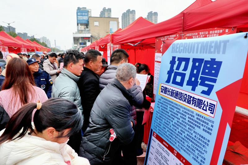 今日,裕安区 2026 年 “春风行动・就业援助季” 暨 “助企复工复产” 专场招聘会火热开启,现场红色拱门醒目,展位整齐,求职者往来其间,现场氛围热烈。