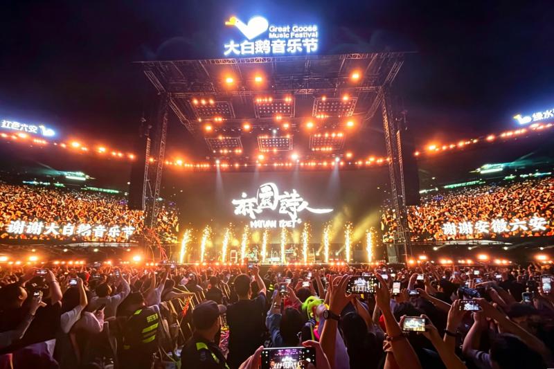 六安大白鹅音乐节燃爆裕安夜空!本土特色 IP 与摇滚热血碰撞,万人齐聚体育场共赴音乐盛宴。璀璨灯光交织漫天烟火,各类乐队倾情献唱,台下荧光成海、合唱震天。“红色六安” 与青春旋律同频,用一场酣畅淋漓的狂欢,定格属于这座城市的滚烫音乐记忆