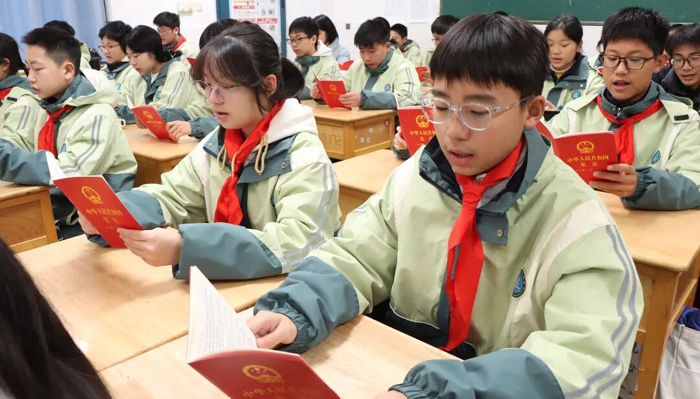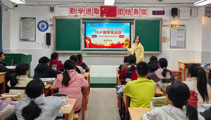 课堂成为普法主阵地。六安九中组织开展“宪法晨读”和主题班会;紫竹林小学、智慧林小学通过主题讨论、知识问答、情景模拟等形式,帮助学生理解宪法与日常生活的联系。智慧林小学还组织教师开展专题学习,夯实依法执教基础。