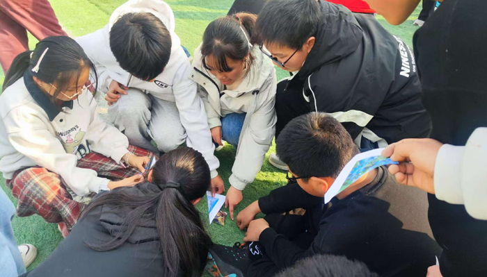 主体活动环节,“竞争与合作”三部曲层层递进。在“资源搜集大作战”中,各小队围绕任务卡协同行动,在对外竞争中强化内部沟通决策,深刻领悟到“协作是竞争底气”的真谛;“同心绳对抗赛”里,两两队伍正面比拼,切实体会到“步调一致方能致胜”的关键;“拼图接力赛”作为终极任务,融合资源整合与战略协作,同学们通过协商交换碎片、才艺求助加速进度,最终领悟“共赢才是最高效的胜利”,打破了“纯粹竞争”的固有认知。