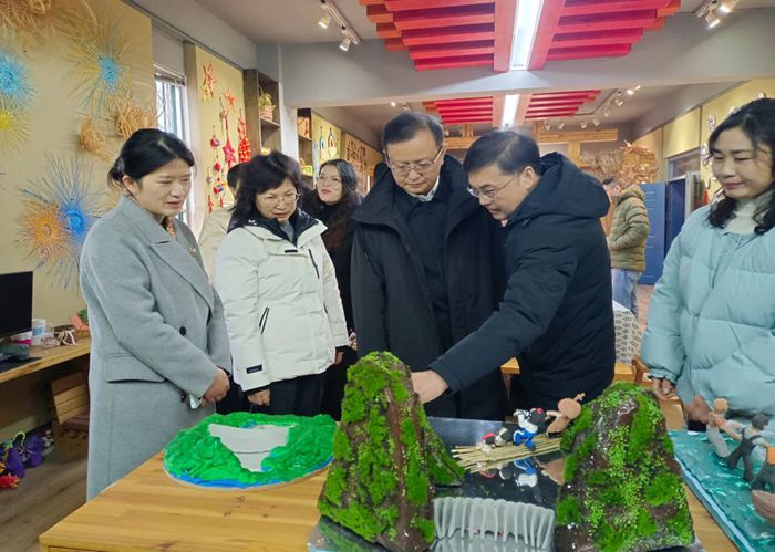 随后,与会人员参观了学校三楼“红·艺工坊”,近距离感受学校融合红色文化打造的艺术课程成果。工坊内学生作品与教学场景,生动体现了美育与红色教育的有机融合,获得一致好评。