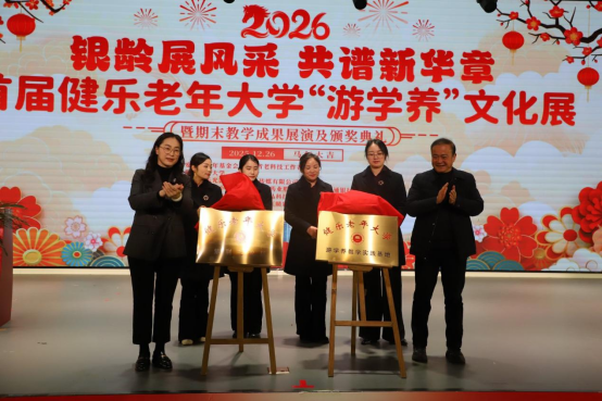 典礼上,学校对年度优秀教师、班委、学员及志愿者进行了表彰。随后,李静校长与紫荆花小镇董事长田淮民共同为“老年大学游学养实践基地”揭牌,标志着双方在资源共享、场景共创方面步入新阶段。