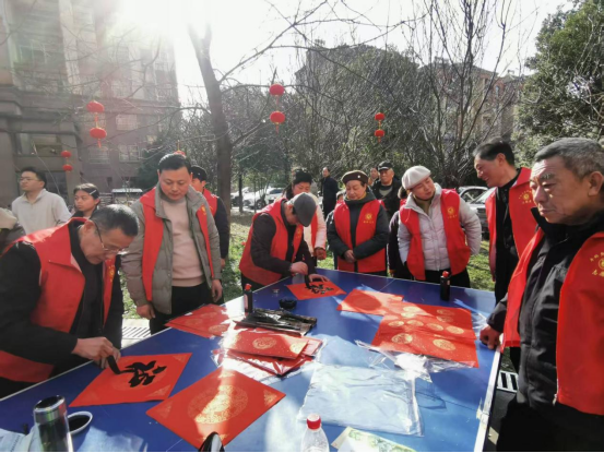翰墨飘香:手写春联传承文化记忆。文艺表演之外,活动现场另一处焦点春意盎然。志愿服务队中擅长书法的老同志们挥毫泼墨,笔走龙蛇。一副副寓意吉祥、墨香四溢的春联,一个个饱满圆润、气韵生动的“福”字,在他们笔下诞生。这不仅是对传统书法艺术的展示,更是将新春的美好祝愿凝结于方寸红纸之间。裕安区社工部部长李彬,区老年大学党委委员、校长助理李胜,志愿服务队党支部书记朱俊珍等领导亲自将春联和福字分发给社区居民。居民们手捧油墨未干的春联与“福”字,脸上洋溢着喜悦的笑容,浓浓的年味与深厚的文化底蕴在传递中弥漫开来,传统文化以最亲切的方式融入了百姓生活。