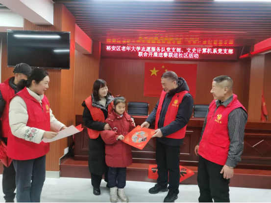 裕安区老年大学志愿服务队党支部、文史计算机系党支部联合开展“义写春联送居民”主题党日活动