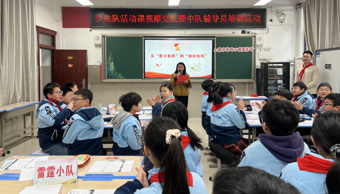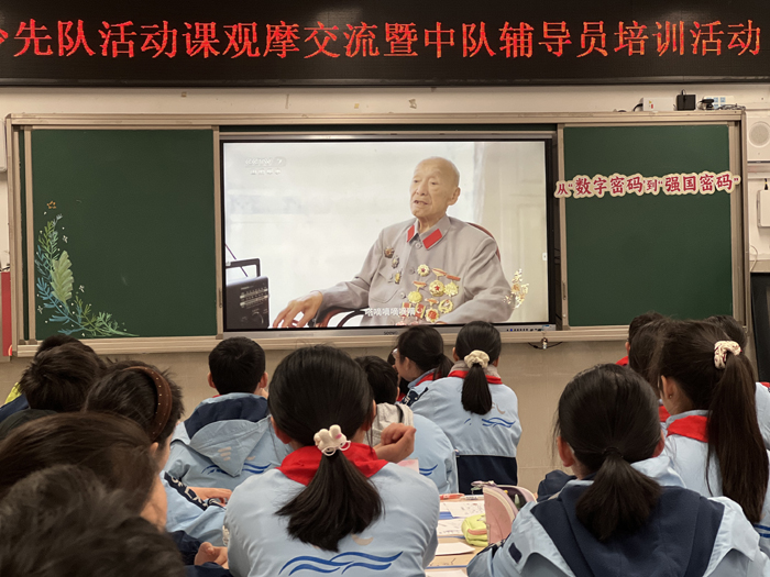活动中,来自六安市人民路小学南山校区副校长吴贻楷老师带来少先队活动课——《从“数字密码”到“强国密码”》精彩展示。本课以“数字密码”为贯穿始终的主线,构建了从历史感知到未来担当的沉浸式学习路径。课堂从破译“军”字开启体验之旅,让队员在亲身实践中感受战时情报工作的不易,筑牢红色情感基础。通过讲述六安抗战老英雄胡正先的先进事迹,组织队员模拟敲击电码,让“忠诚”“信念”的精神品质在具象活动中可感可触,拉近了历史与少年队员的距离。整堂队课设计巧妙、层层递进、互动充分,展现出高水平的少先队育人实效。