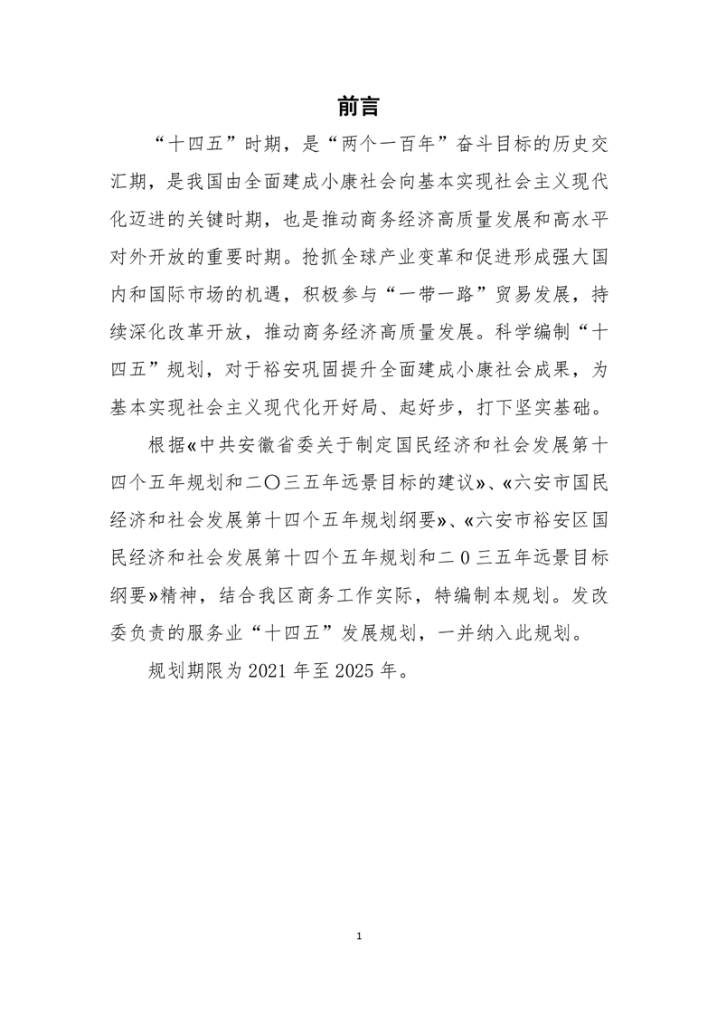 六安市裕安区商务经济和服务业“十四五”发展规划